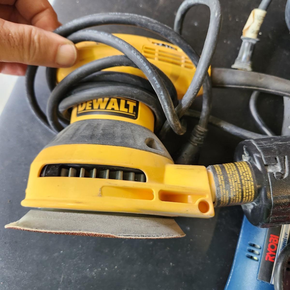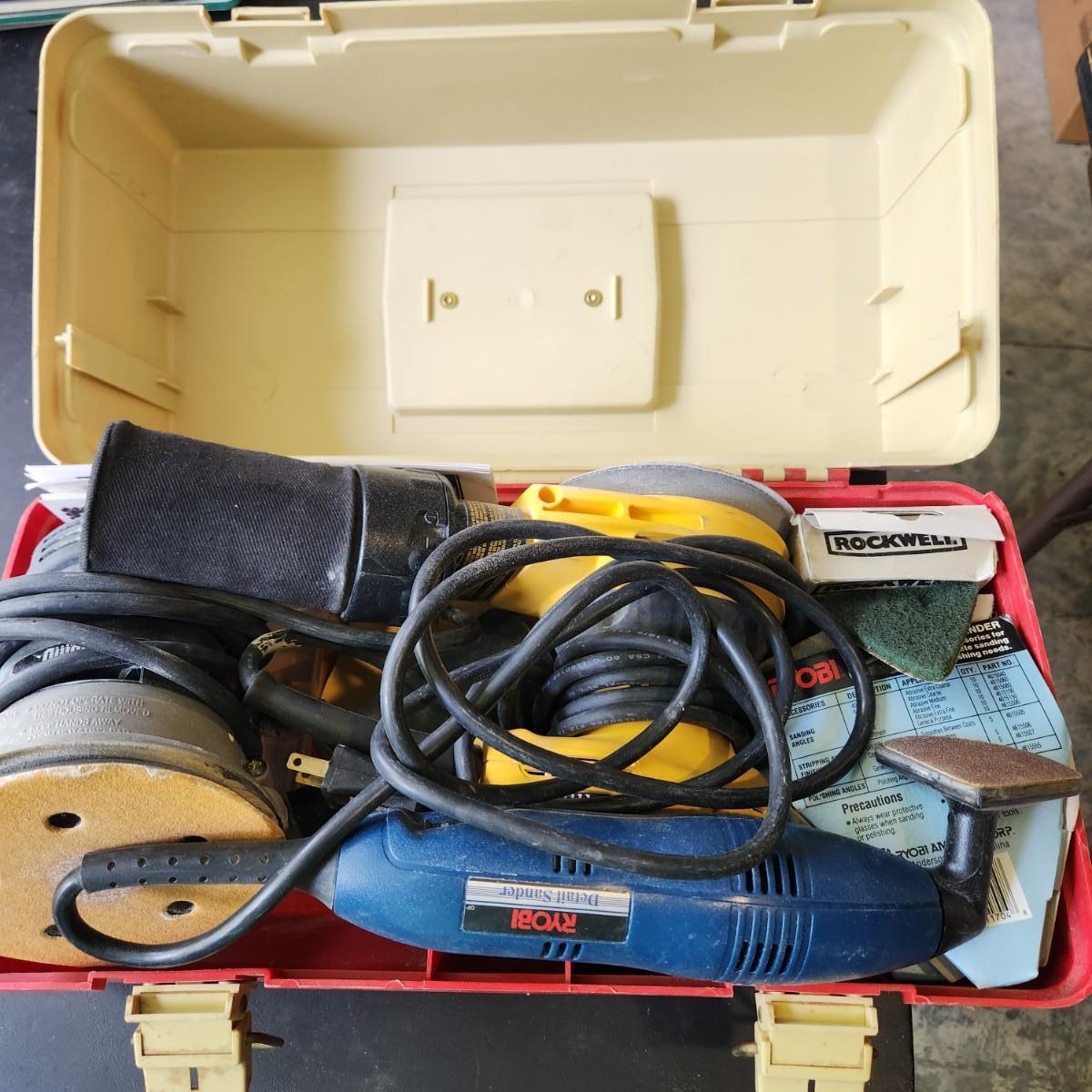 Tool Box with Sanders Ryobi DS-1000, DeWalt D26453, Porter Cable 333 5" Random Orbit Sander Tested