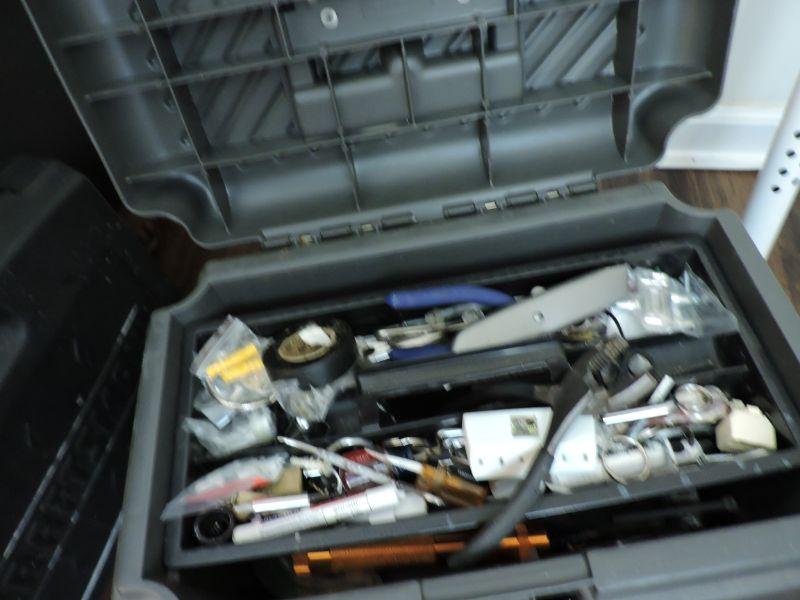 Nice portable tool chest step stool filled with tools. **Please read Terms and Conditions before placing a bid. Pick up is Thursday, August 15, 2019 from 4pm to 7pm or Sunday, August 18 from 11am-2pm in Mullica Hill. All sales are final. All sales are as is, where is. Please review all photos. Any props included in photos are not included in listing. All measurements are approximate.