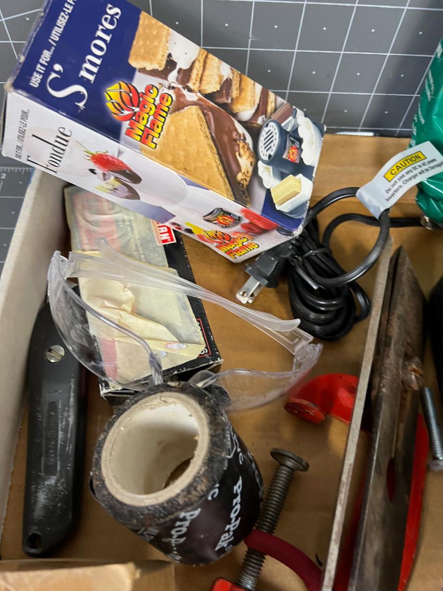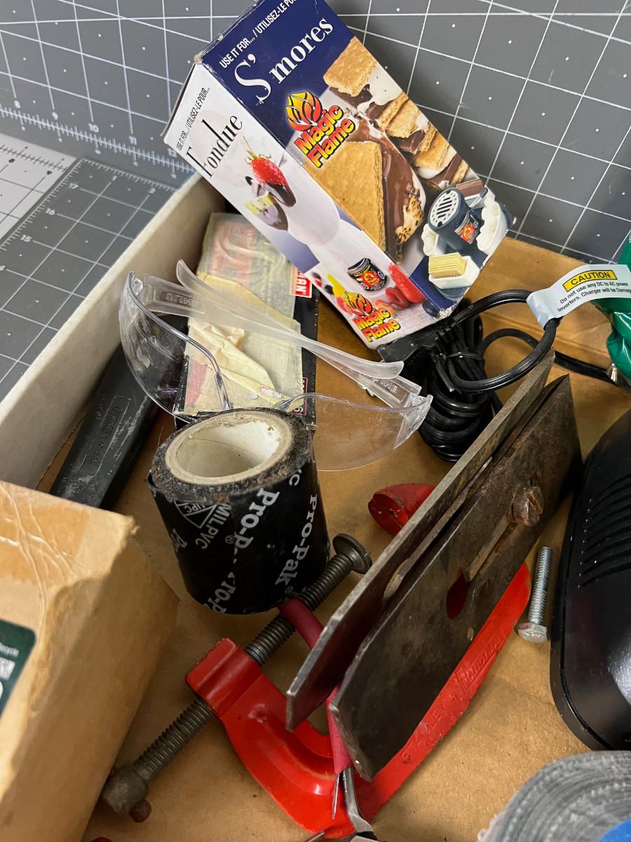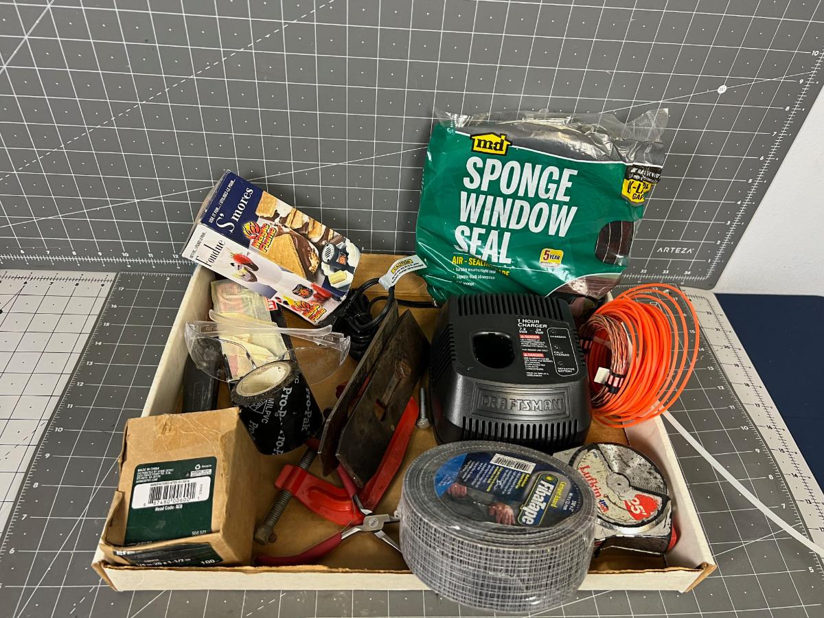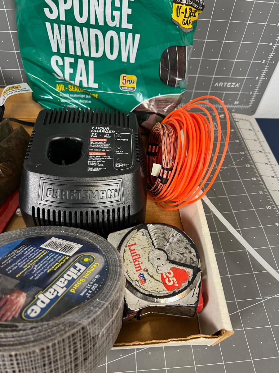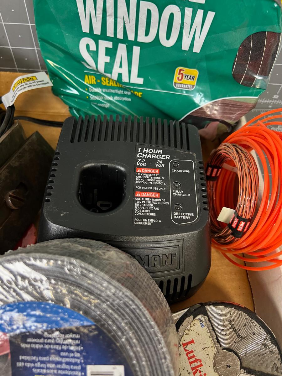 Tool: Garage Clean out box: Tape Measure, Battery Charger