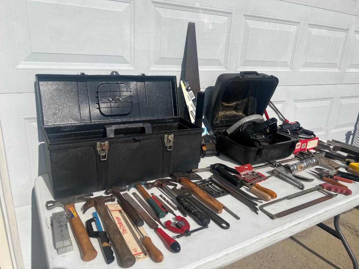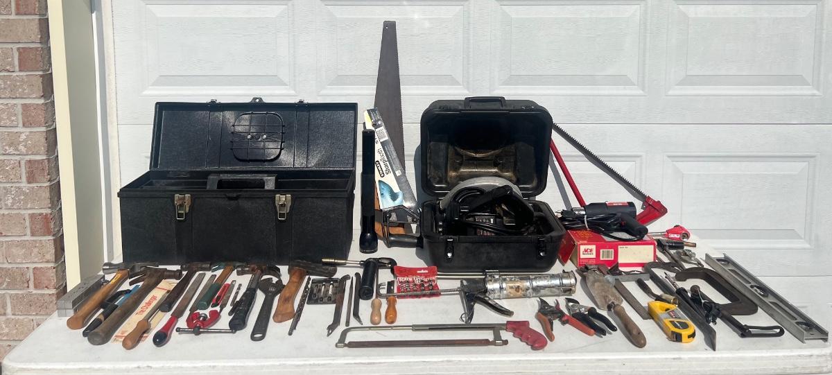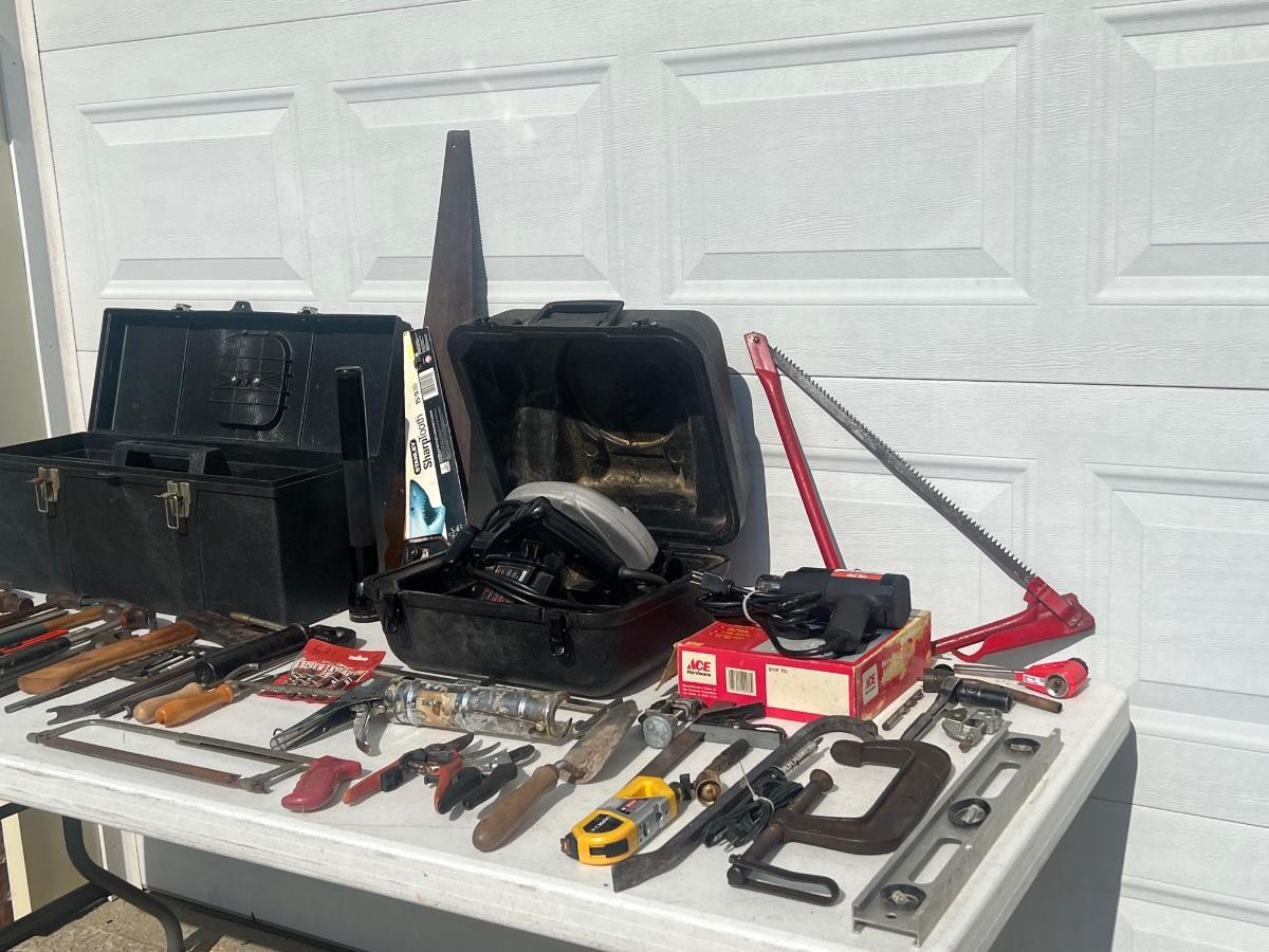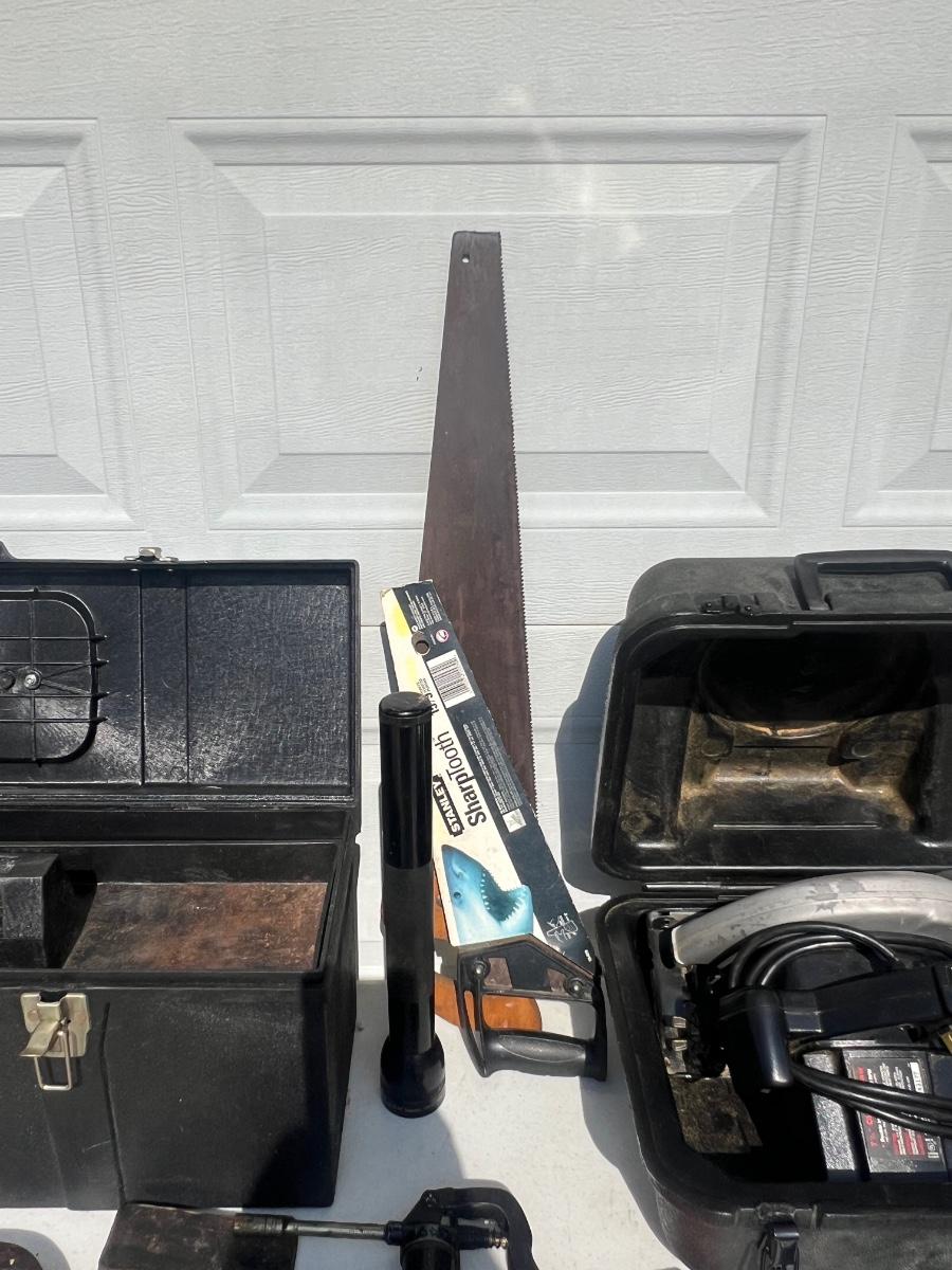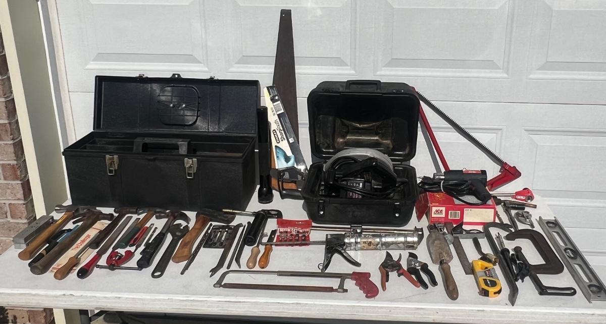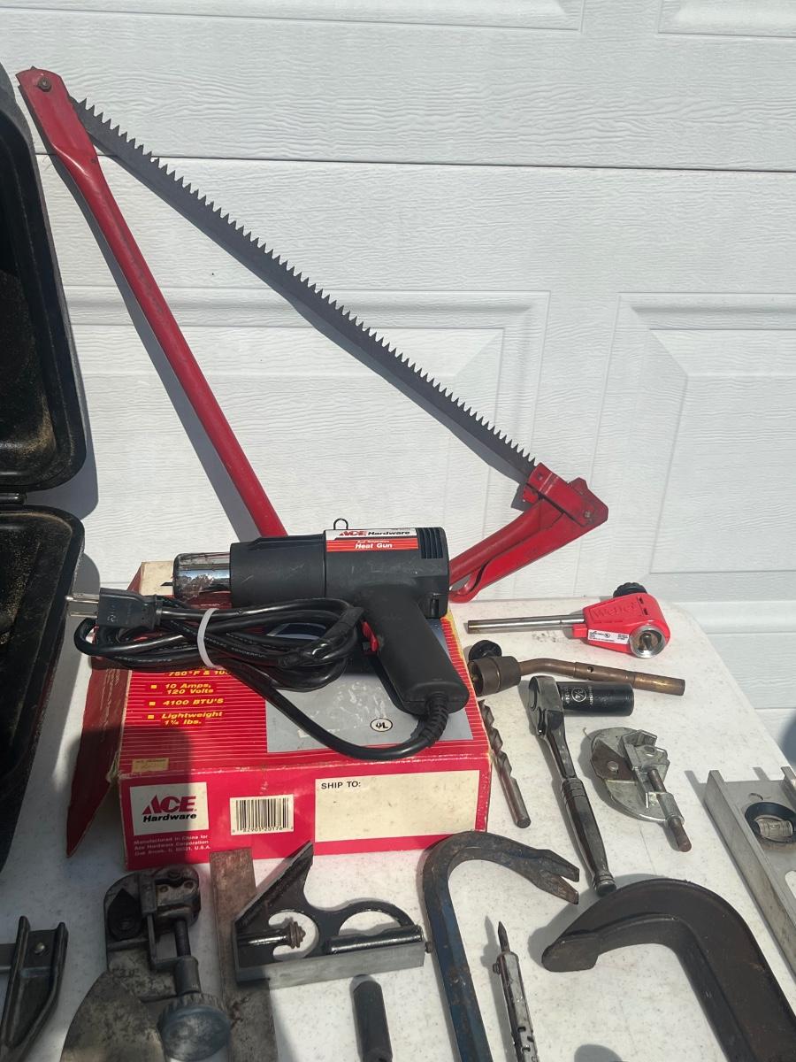 Comes with all tools pictured. Circular saw and heat gun are tested and work as they should. Table not included.