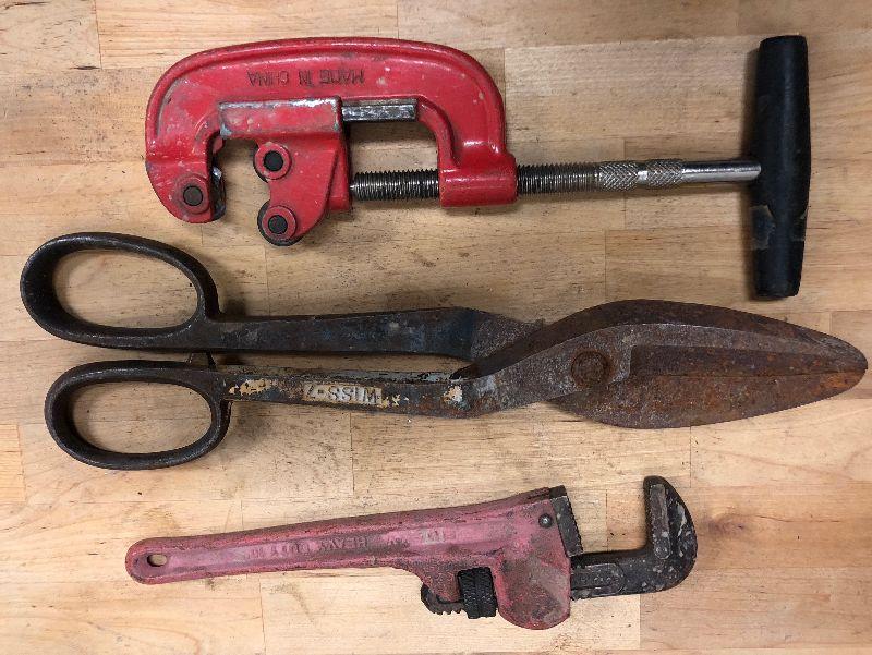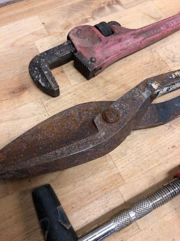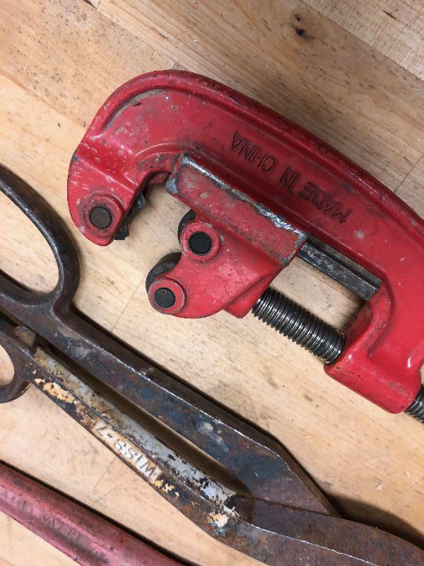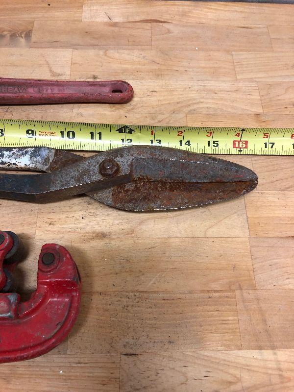 Tool lot #15 pipe wrench, tin snip pipe cutter