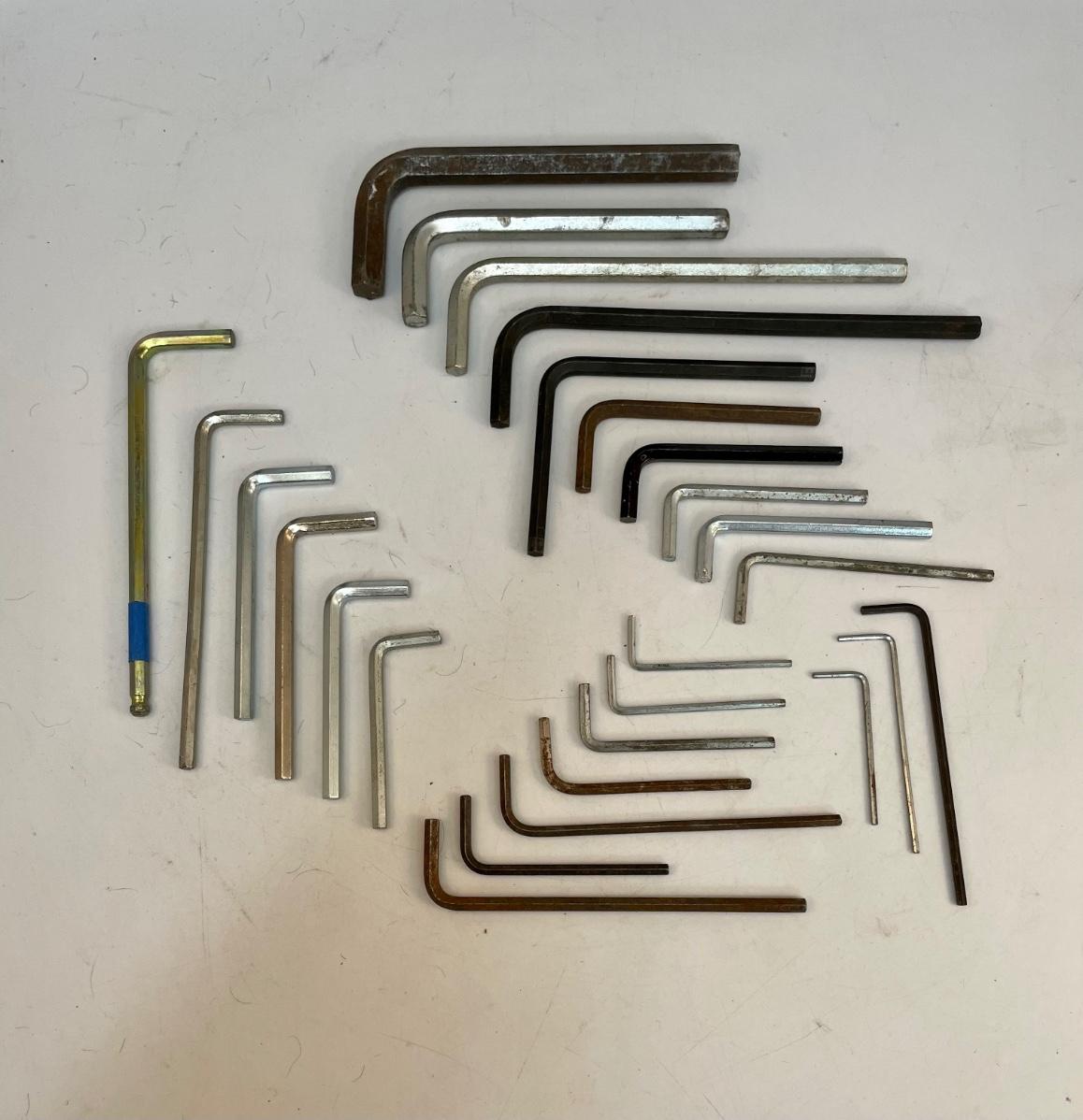 Mixed lot of various size Allen Wrenches. 26 pieces, see photos for details.
