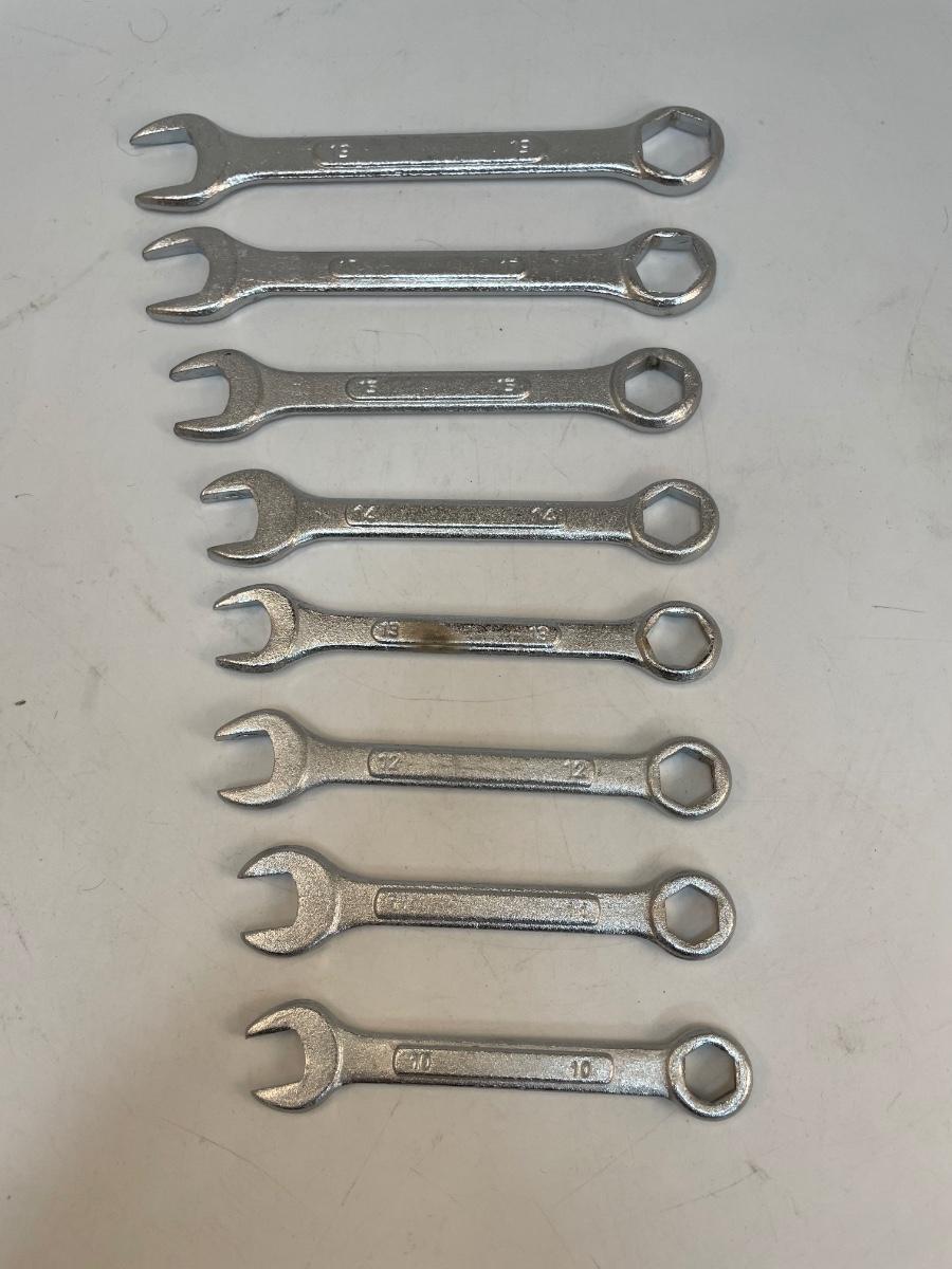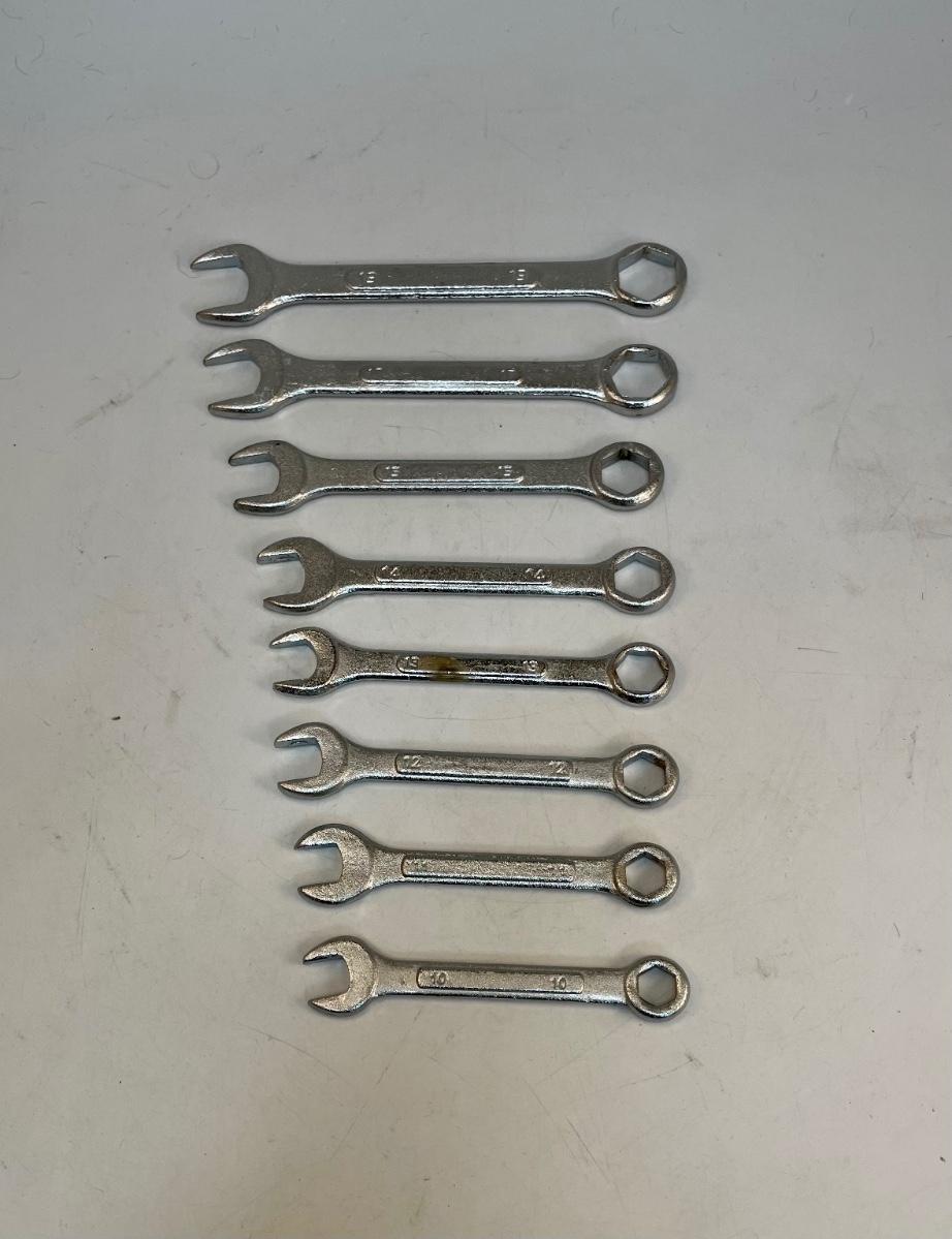 Lot of 8 combination wrenches, sizes vary. See photos.