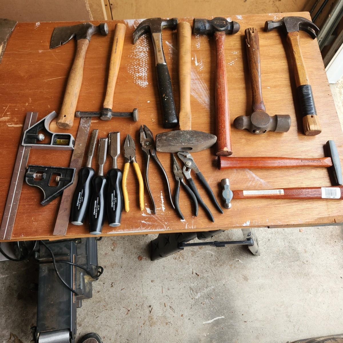 Tool Lot Hammers, Craftsman Chisels , Stanley Plumb Hatchets