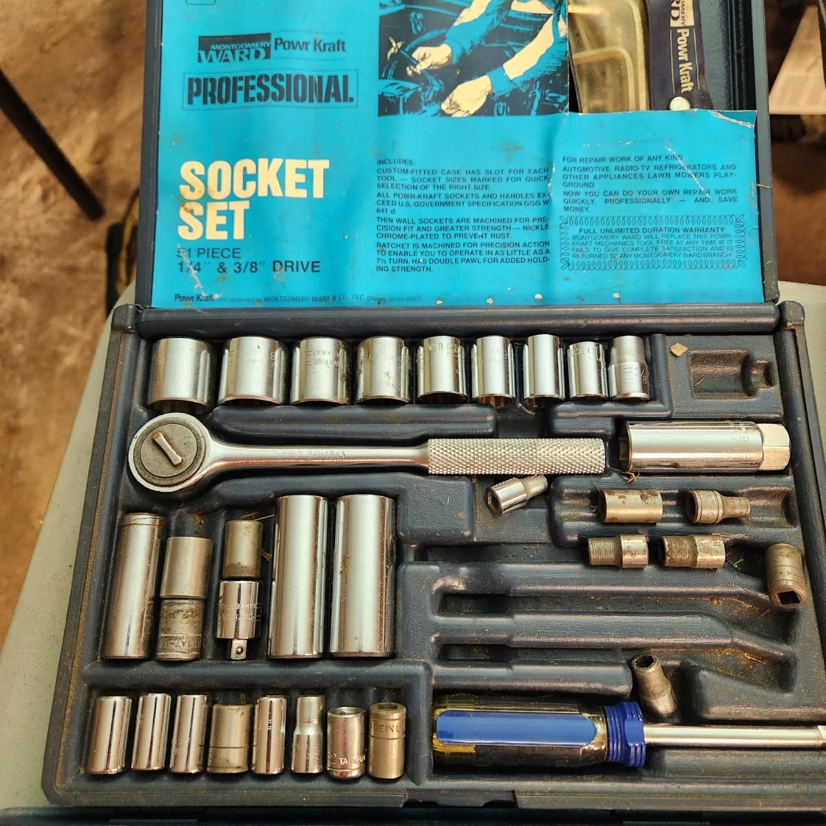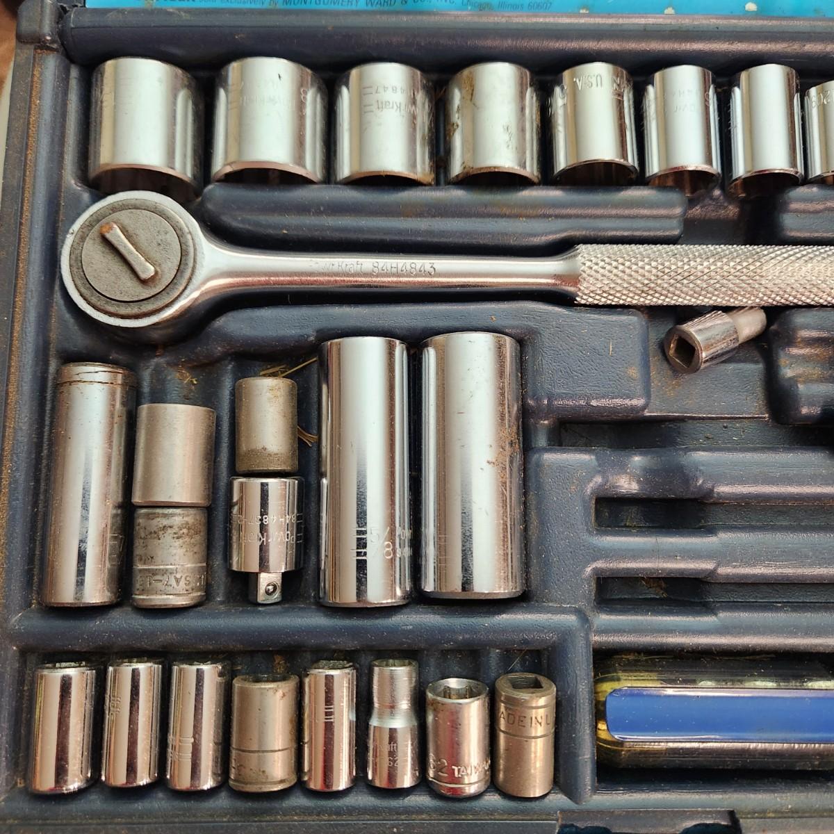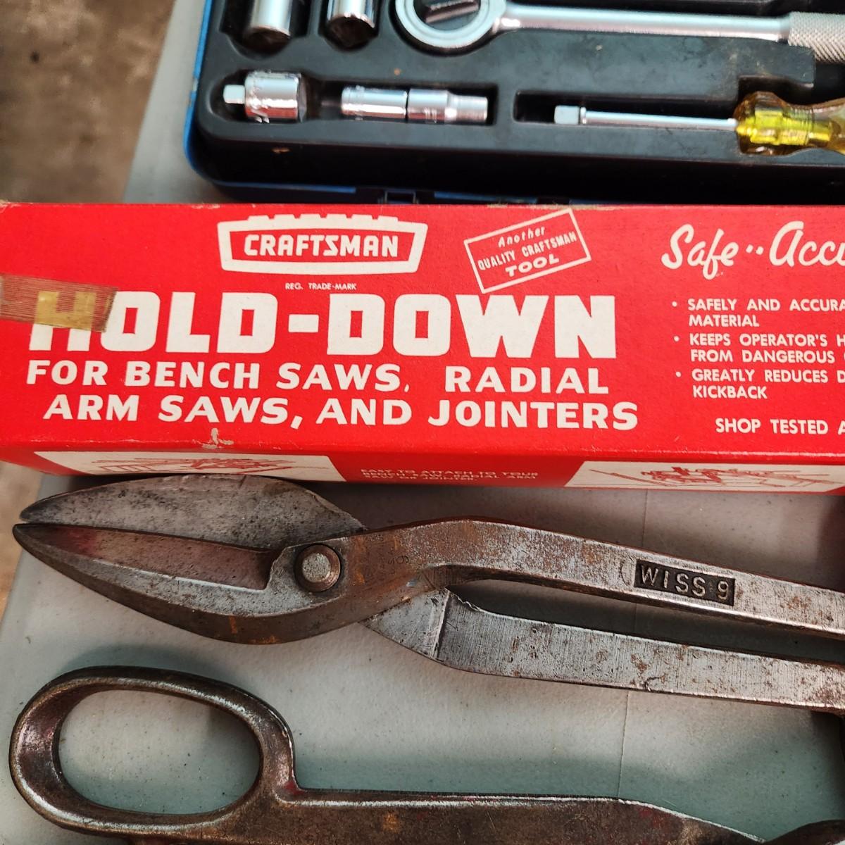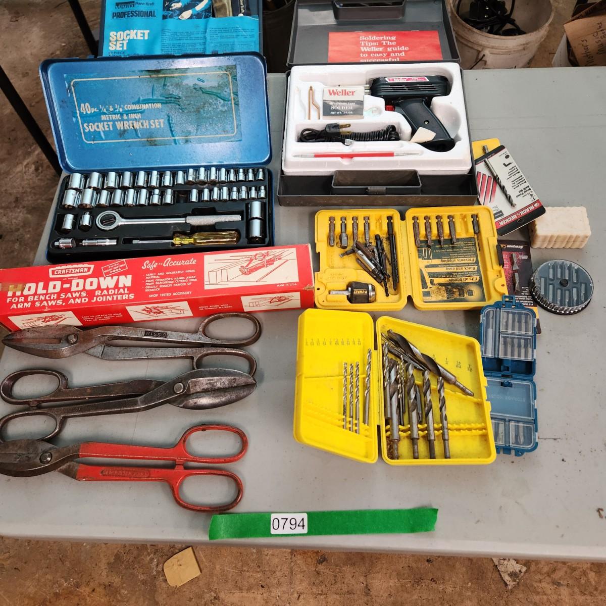 Tool Lot tin Snips Craftsman Hold Down, Sockets Sets, Weller Soldering Kit, Drill & driver bits