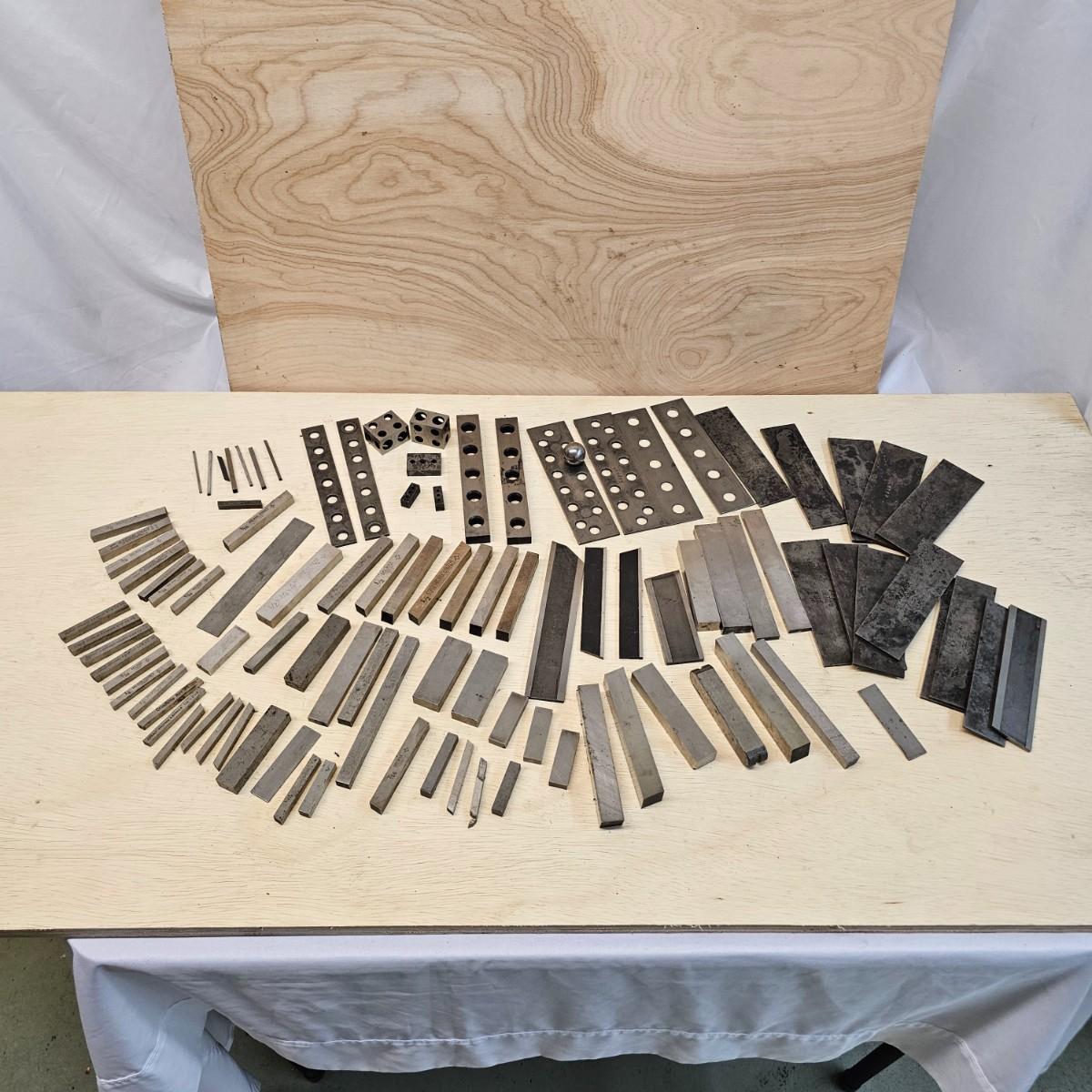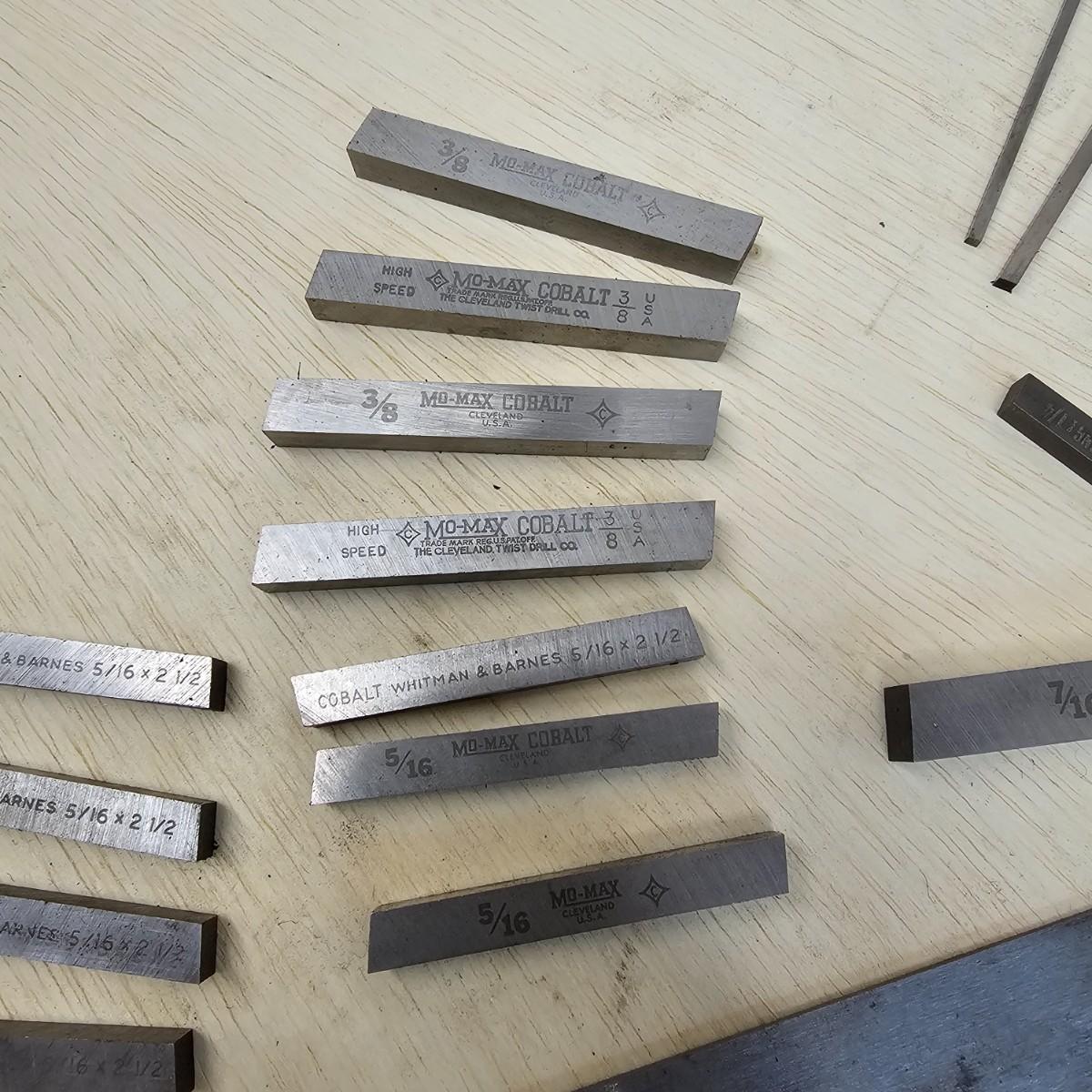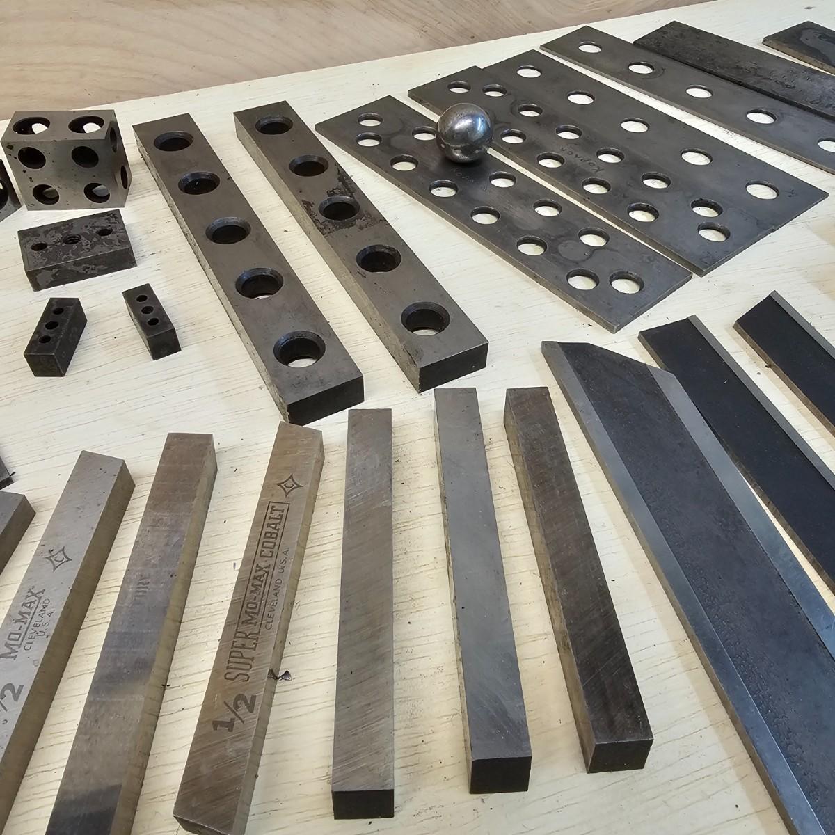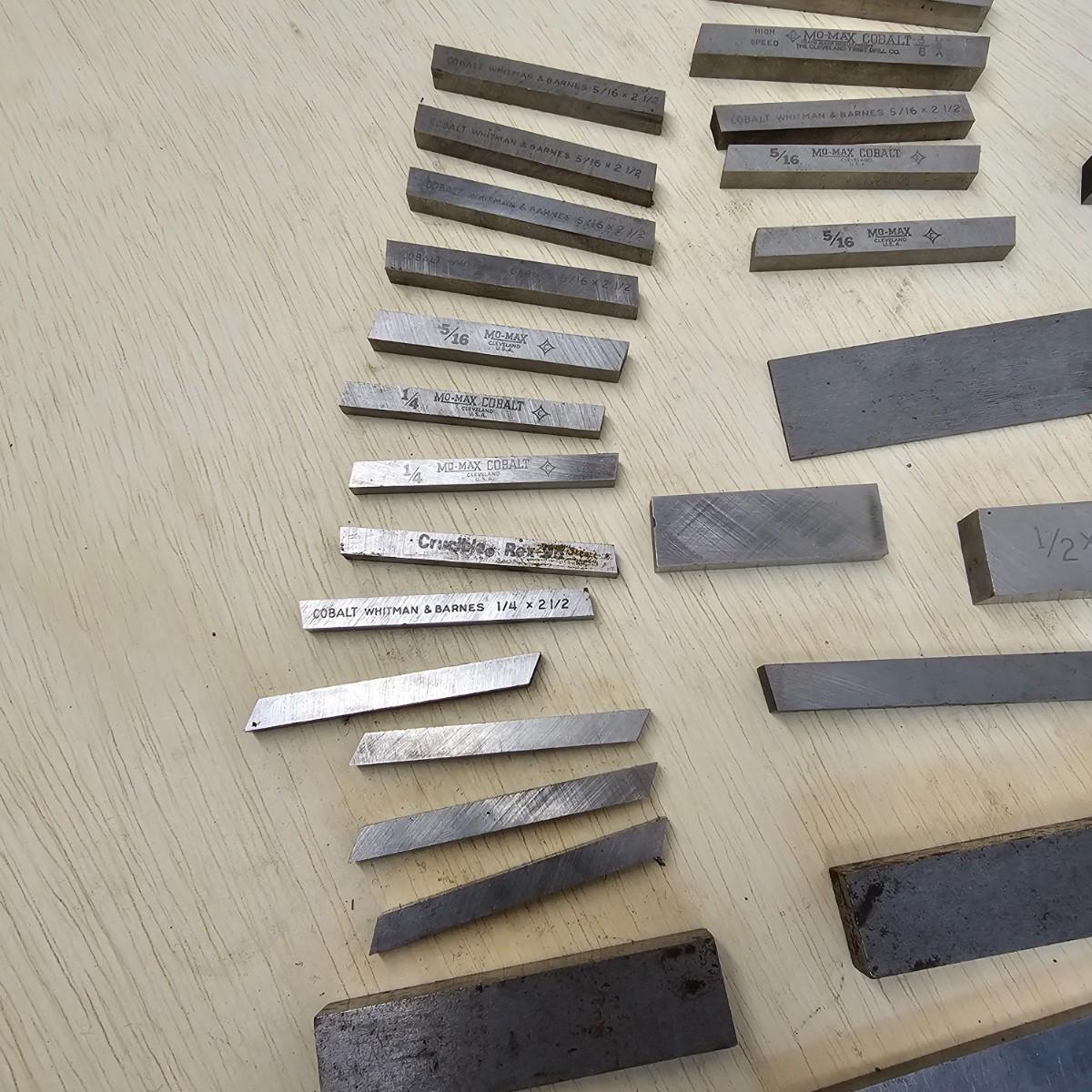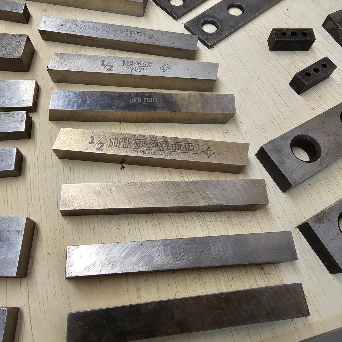 Multiple pieces of tool steel blanks for creating cutters or other items. Also several flat plates of various sizes and thickness, some with pre-drilled and/or tapped holes, 6" to 7" long. Whitman Barnes, Mo-Max Cobalt in many different sizes and thickness. See photos for details. Local pickup only.