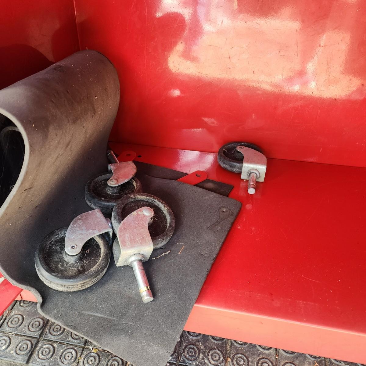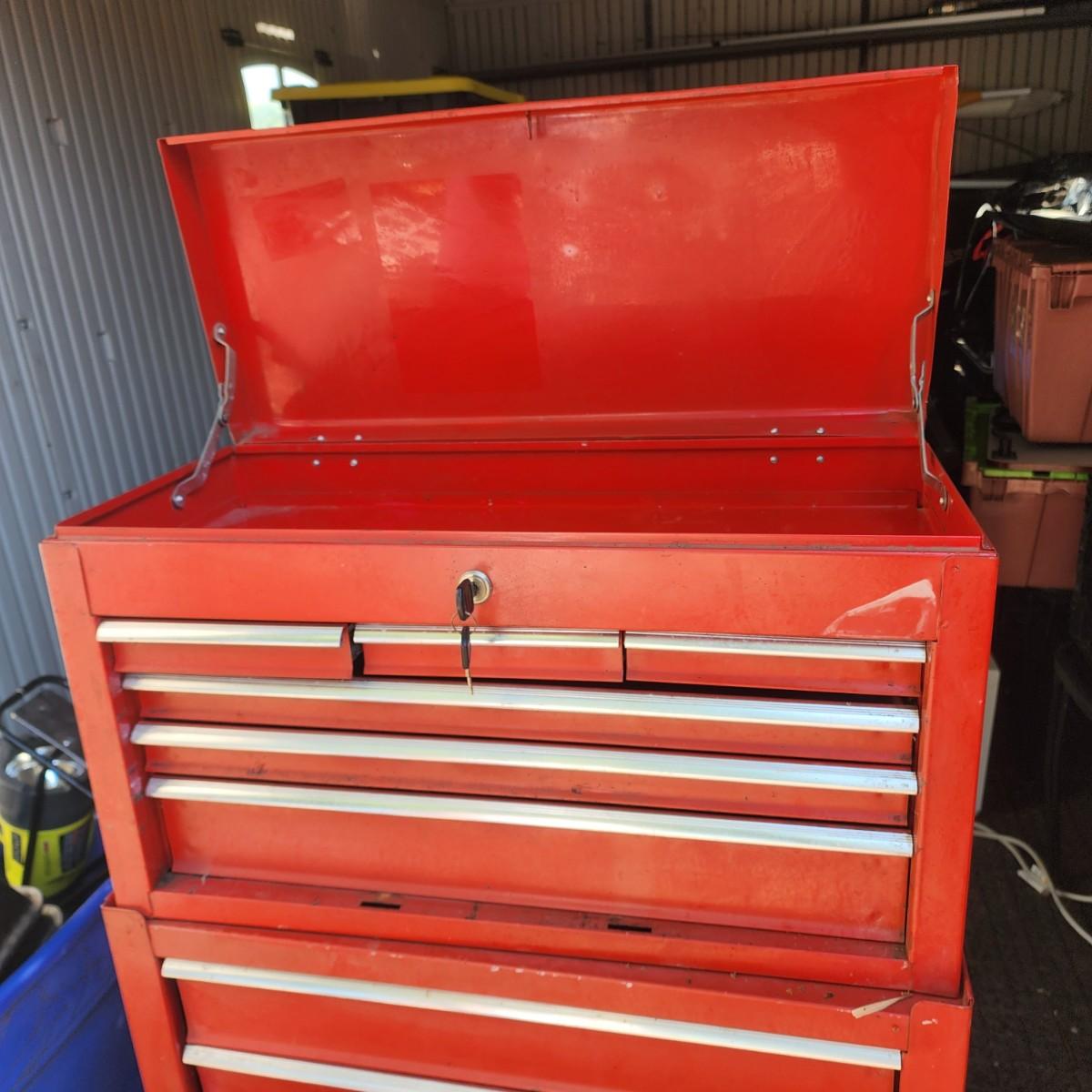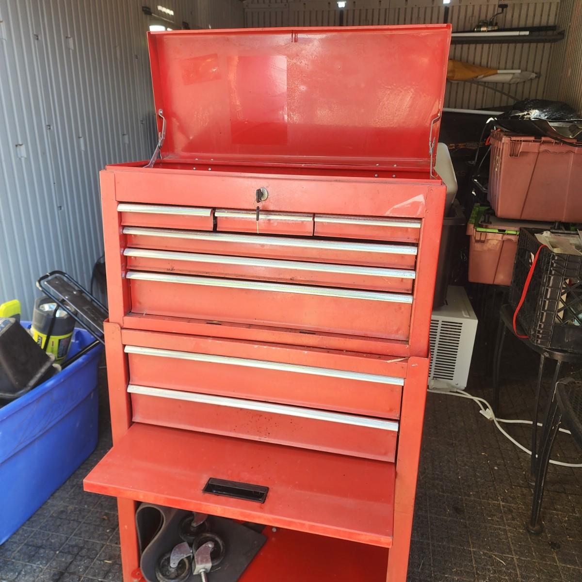 Stackable, toolbox. Comes with wheels and keys.