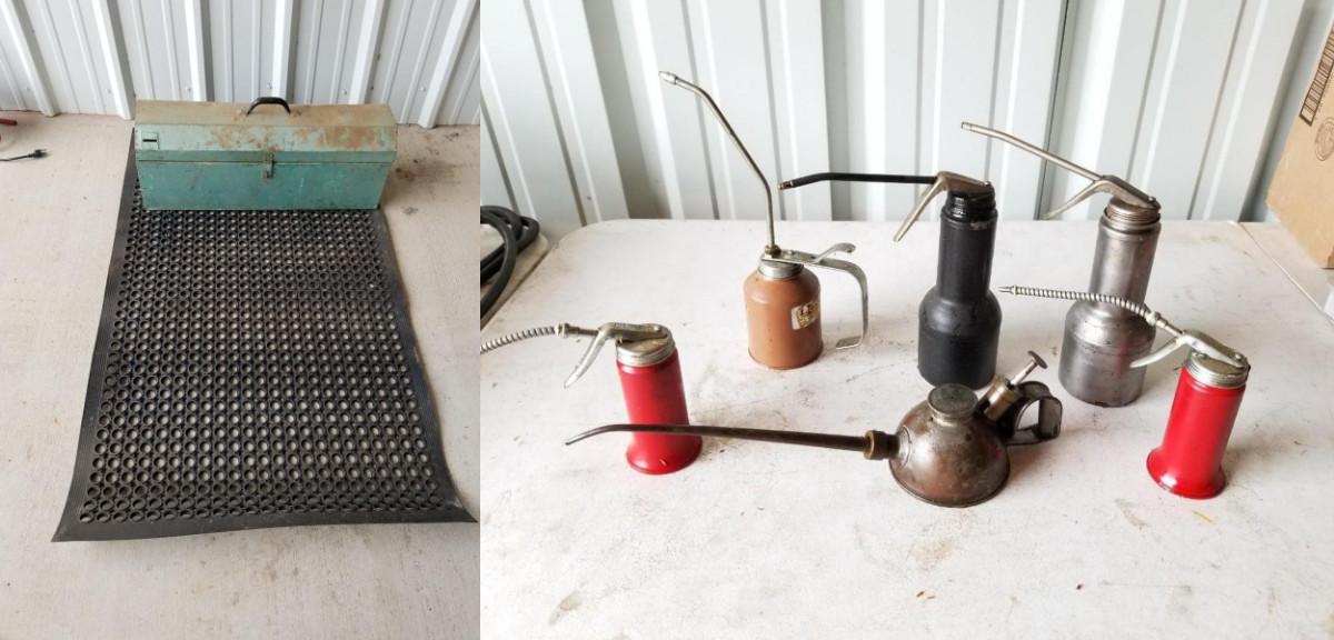 Toolbox, floor mat and grease guns