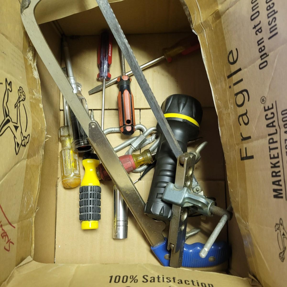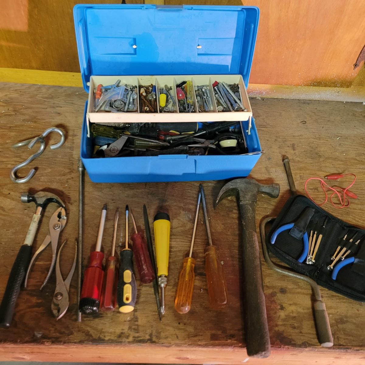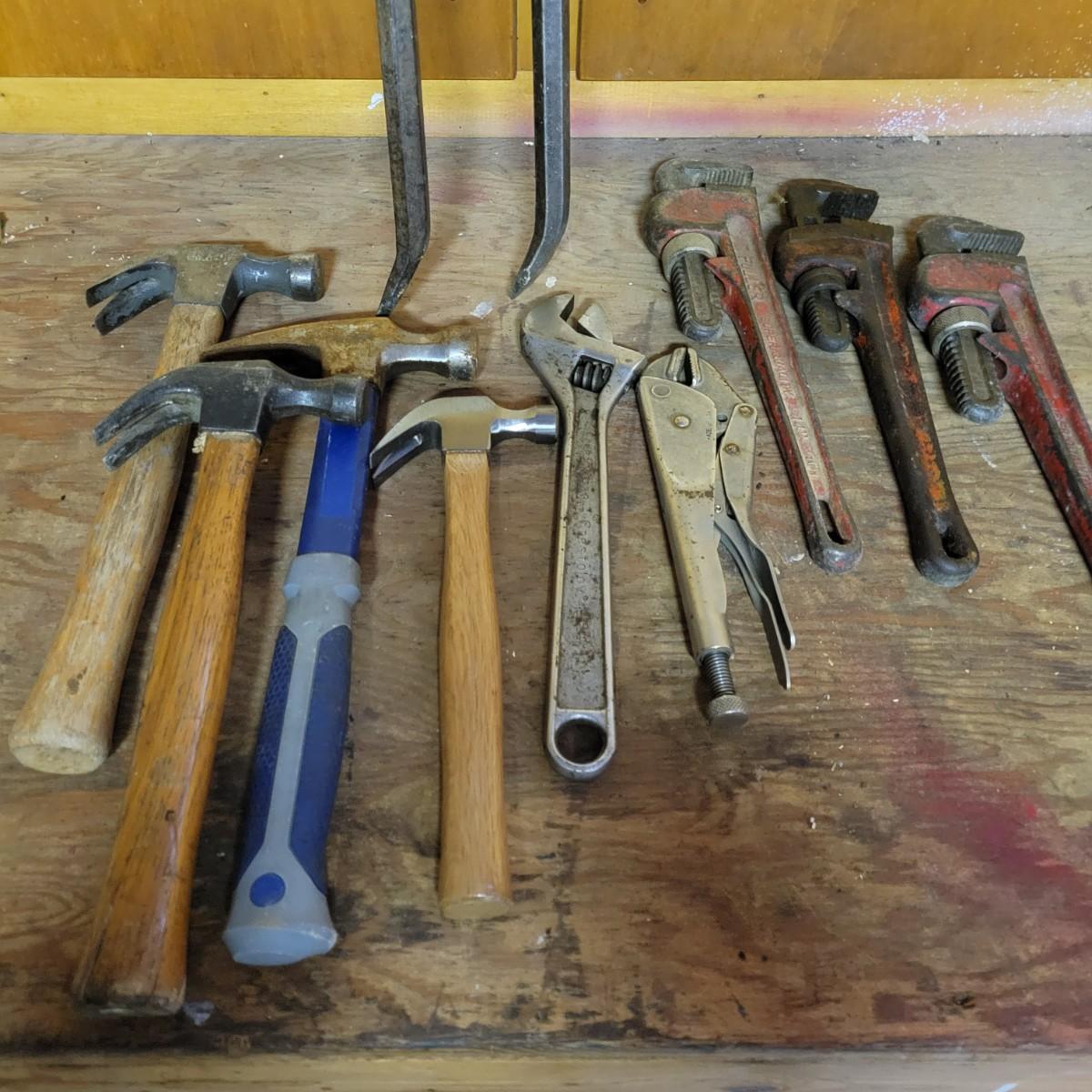 An assortment of hand tools and tool boxes. Lot includes hammers, prybars, wrenches, sockes, screw drivers, pliers and more. Local pickup only