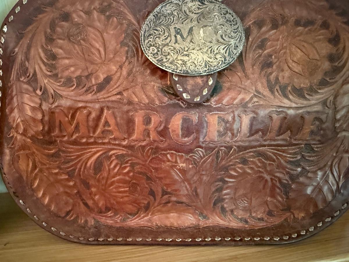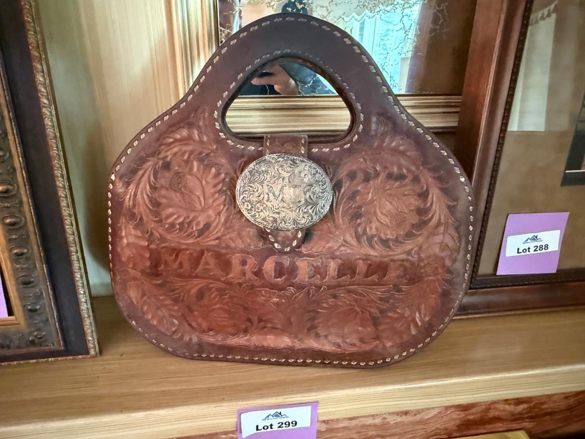 Tooled leather Handbag “Marcelle” w/Sterling Silver buckle