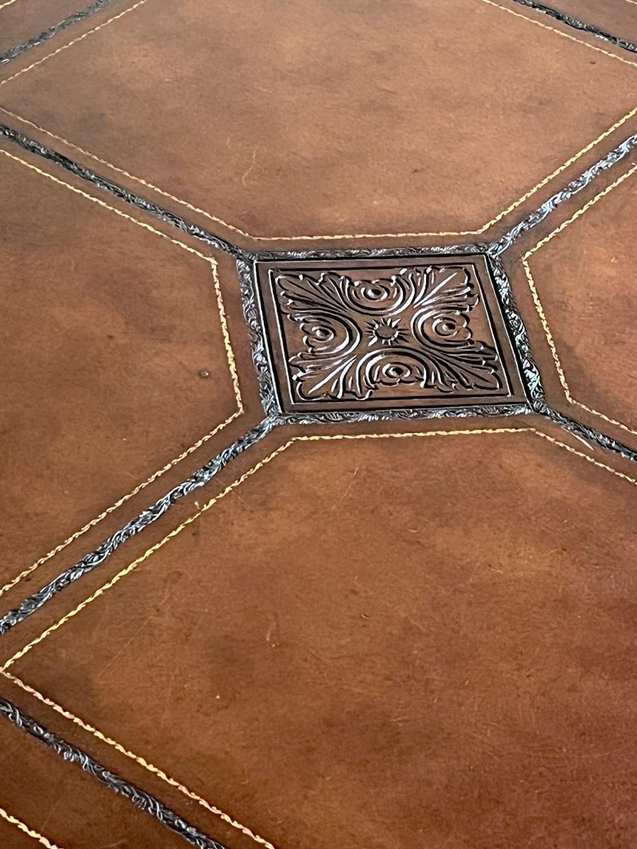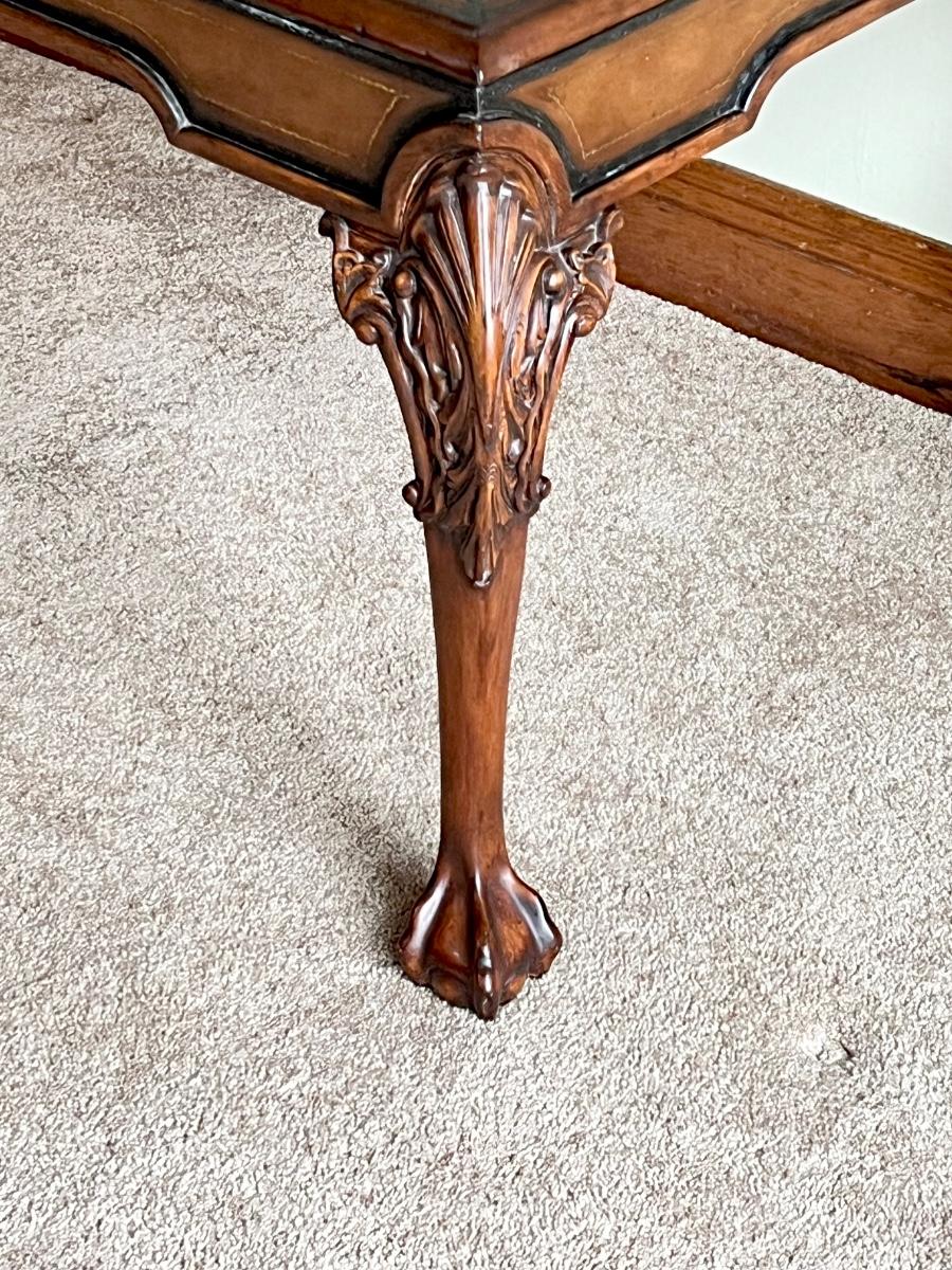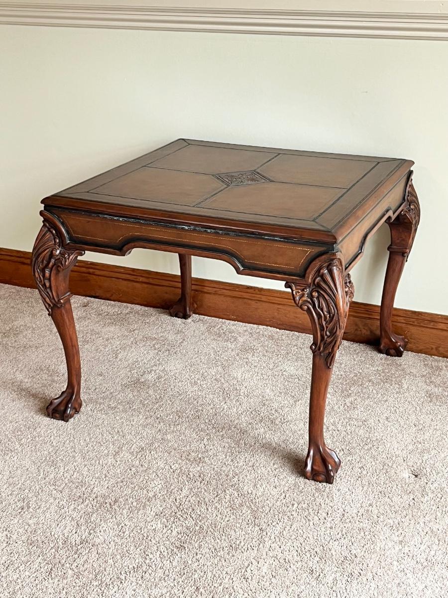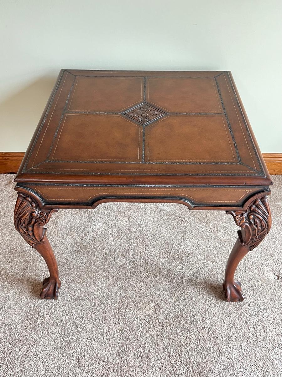 Tooled Leather Top Occasional Table ~ With Ball & Claw Feet