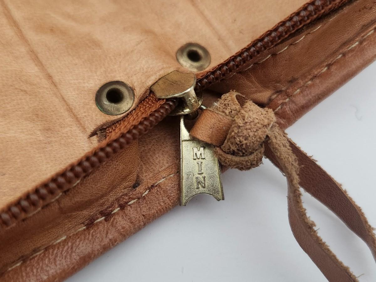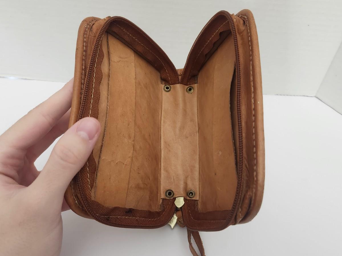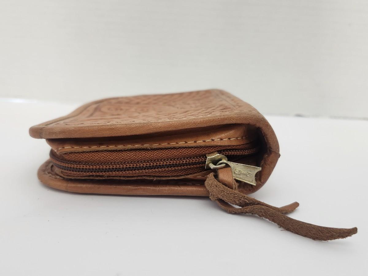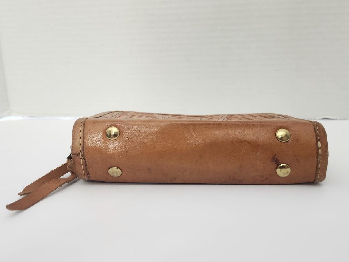 Tooled Leather Zip Around Wallet Floral Basketweave Design Unmarked Brown Leather Accessory