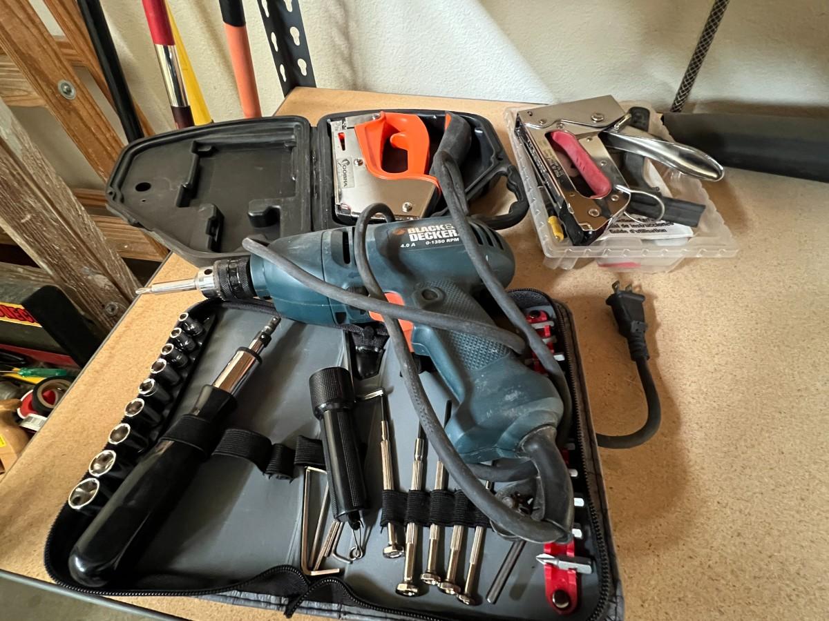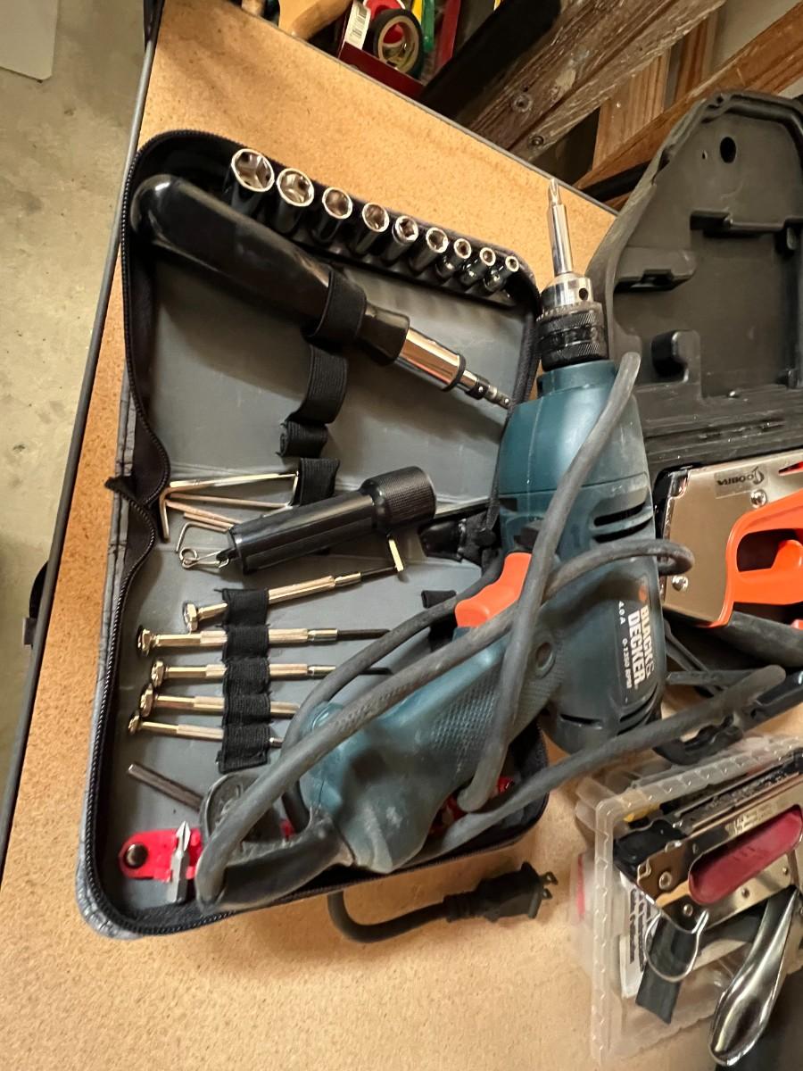 Tools - sockets, drill gun, staple guns