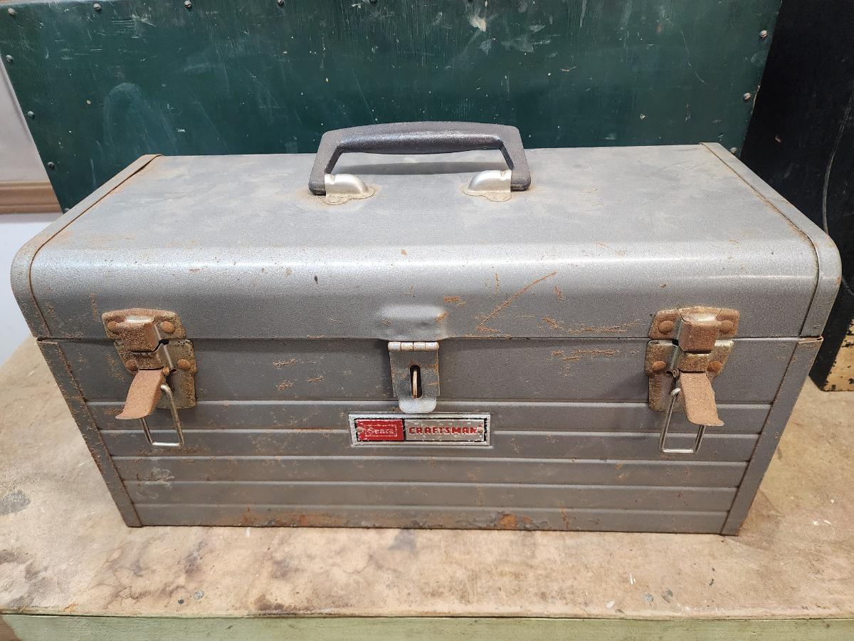 Craftsman Metal Toolbox w/red tray 18"L x 8"D x 9"H (includes items inside)