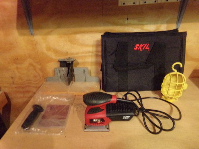 MITER BOX, SANDER WITH CASE & TROUBLE LIGHT COVER