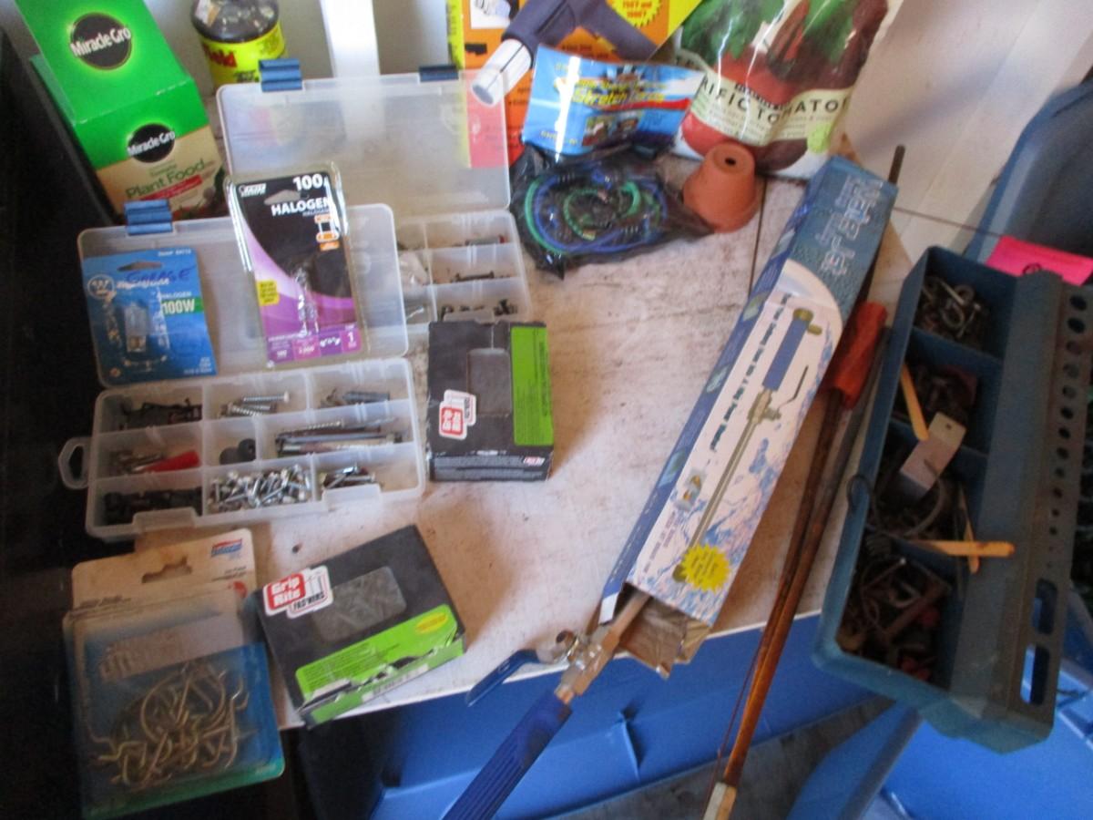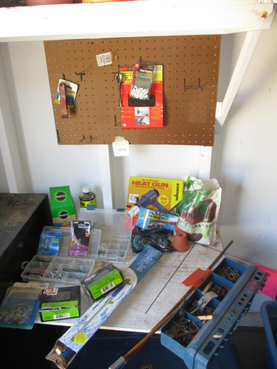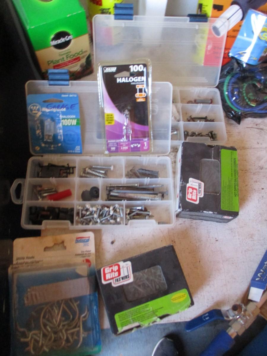 Nails, screws, heat gun, peg board, storage organizers,