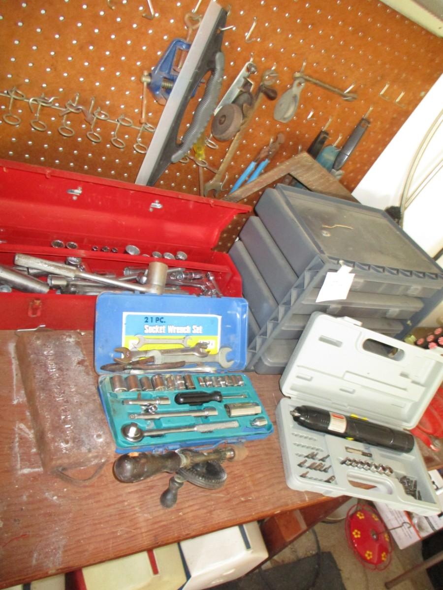 Vice Grip, Cordless Screwdriver, Hand Drill, Socket Wrench Sets, Empty Tool Organizer