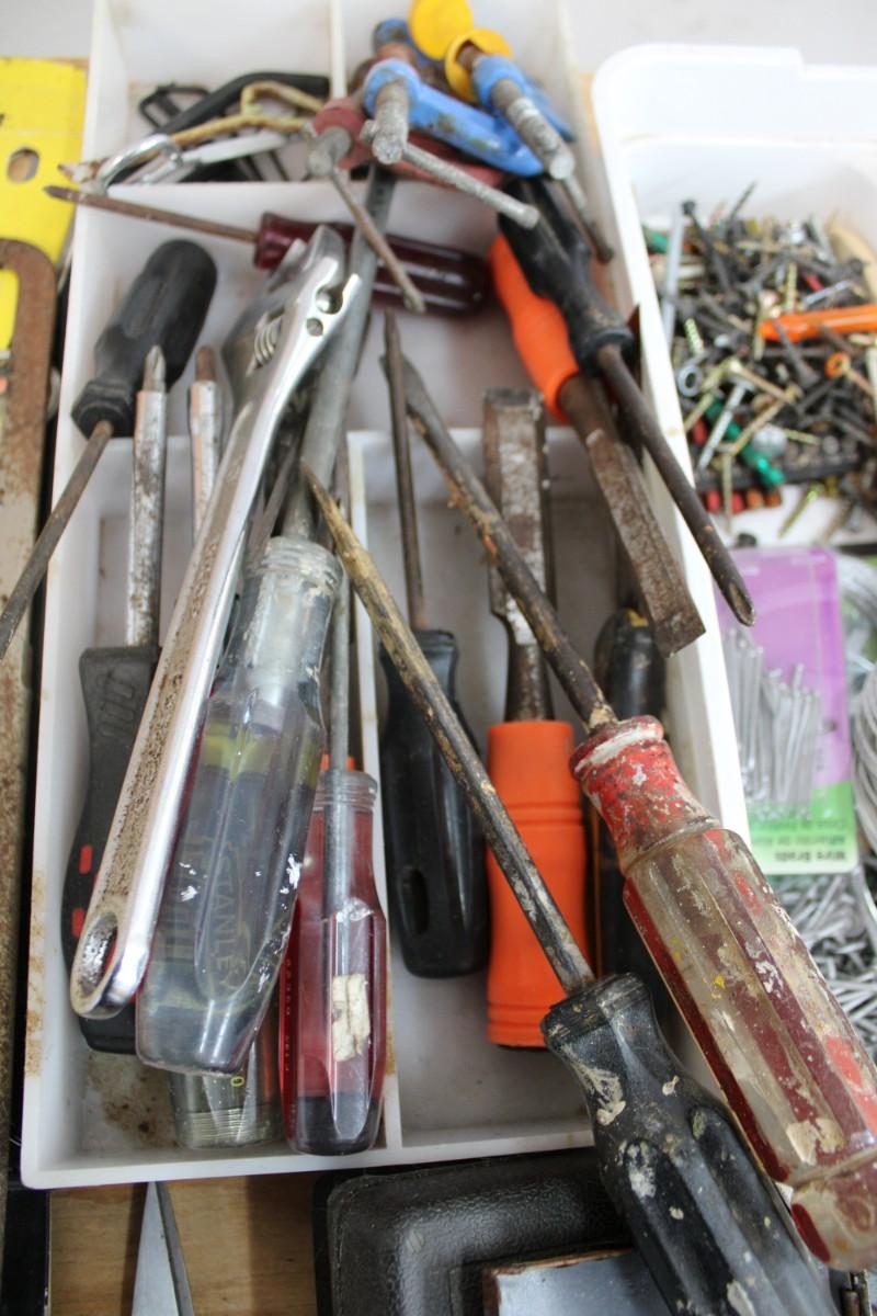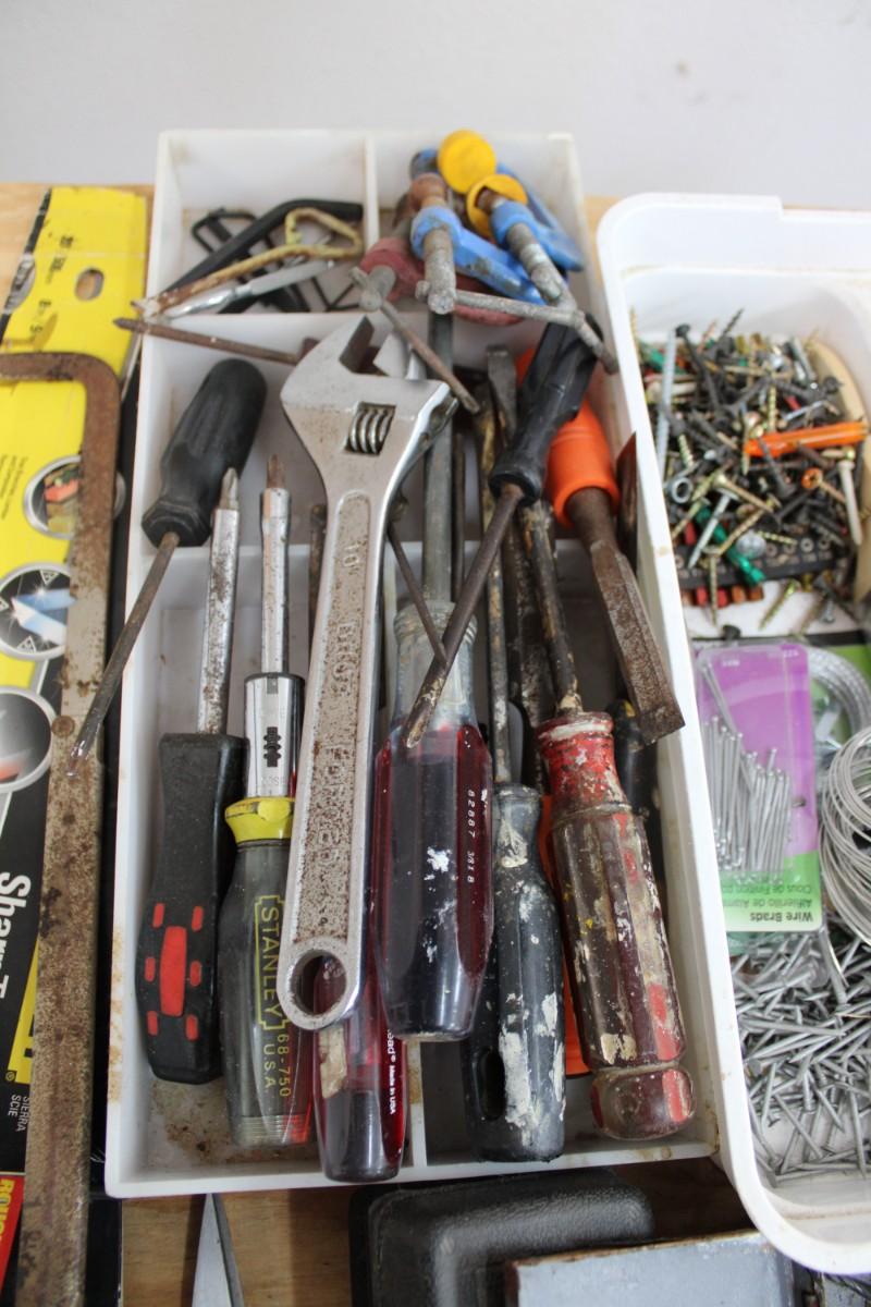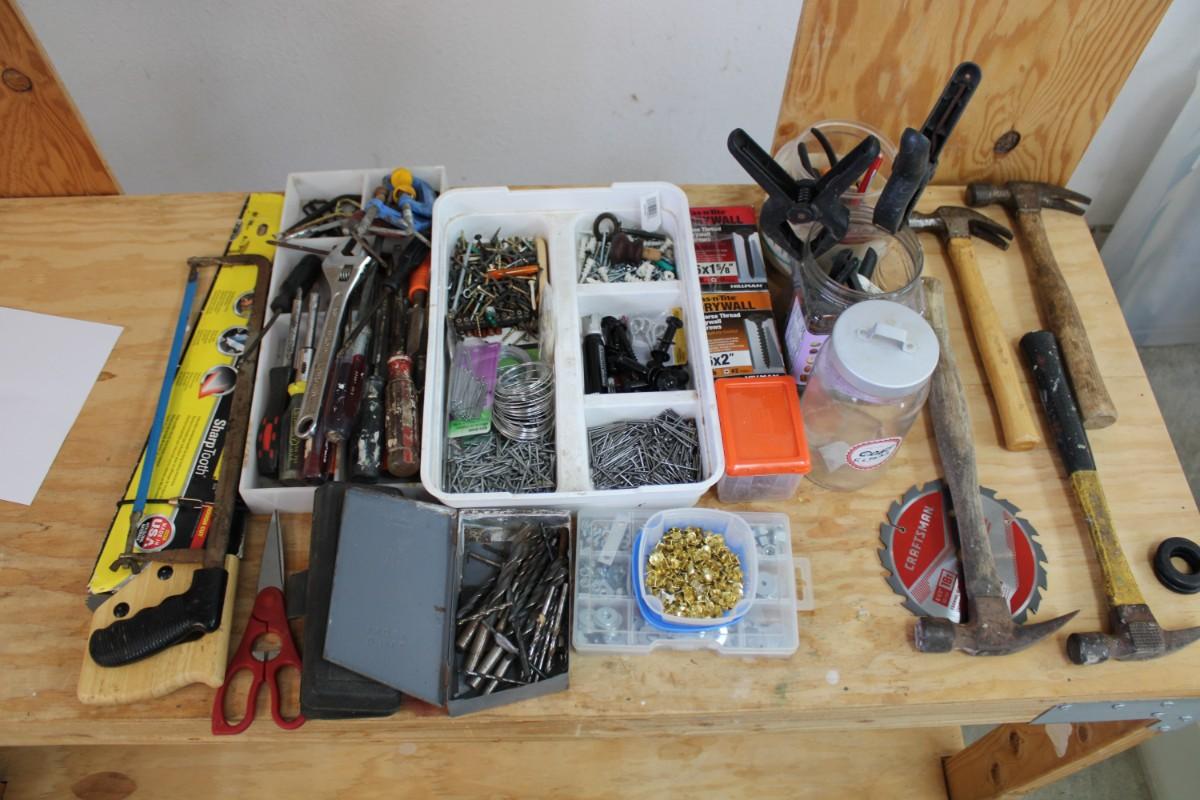LARGE Lot of Hand Tools, Screws, Nails, Clamps, Saws Blades, Fasteners, Hammers and Screwdrivers