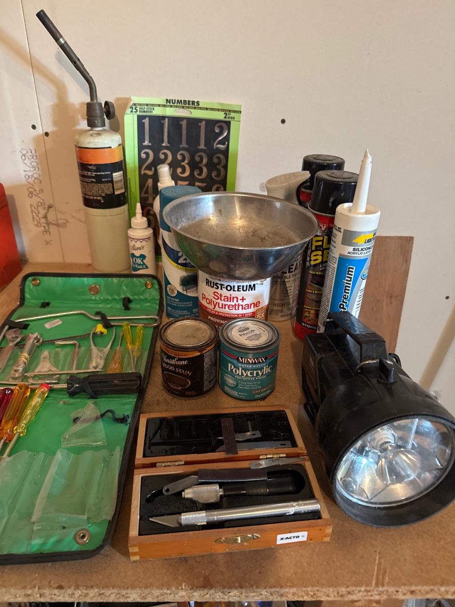 Tools, flashlight, torch, stain and flex seal