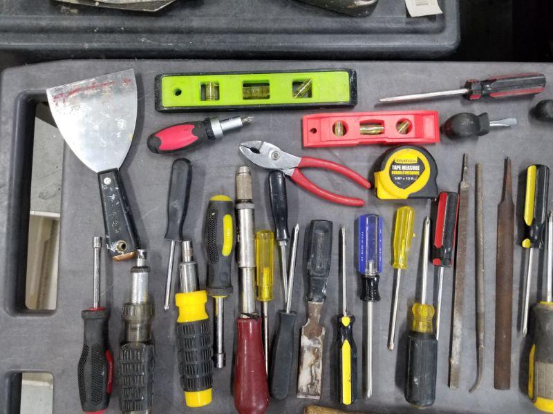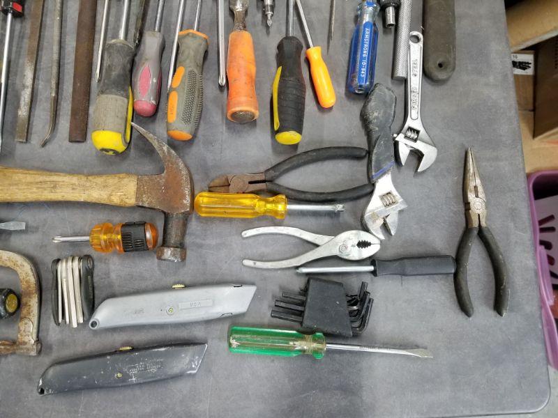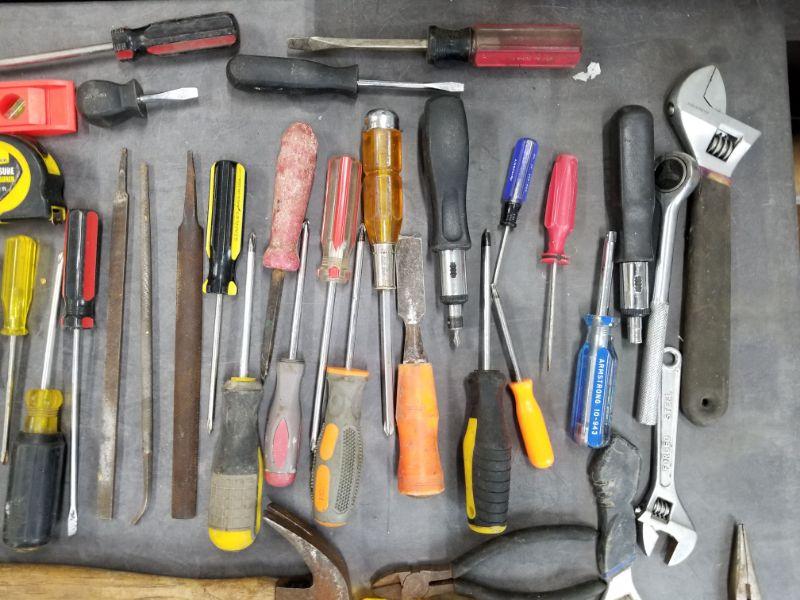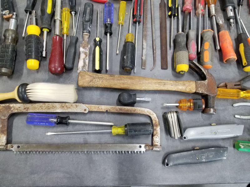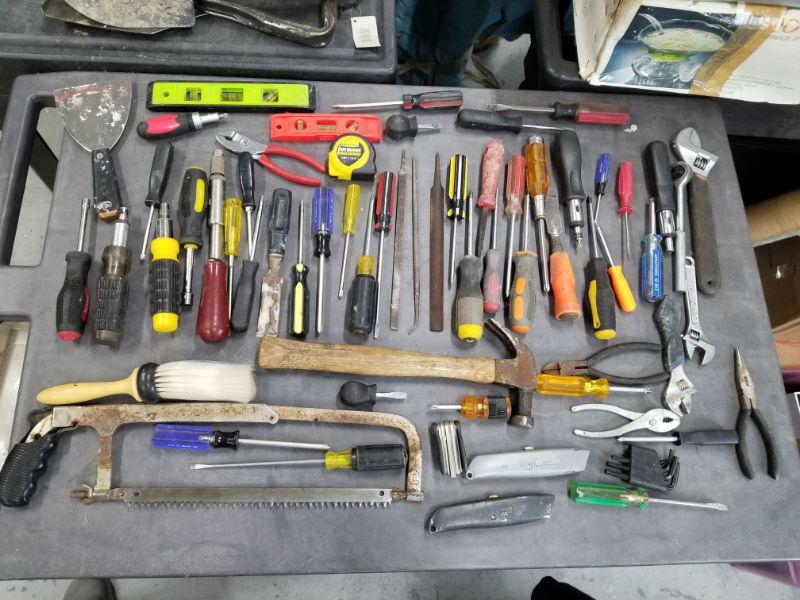 Tools Lot 1 -Screwdrivers, Hammers, Tape Measure, Levels, Hack Saw, Brush, Pliers, Crescent Wrenches and More!