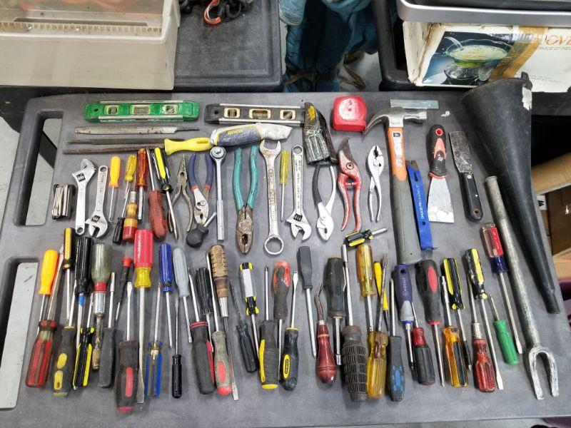 Tools Lot 2 -Screwdrivers, Hammers, Tape Measure, Levels, Funnel, Tin Snips, Pliers, Crescent Wrenches and More!