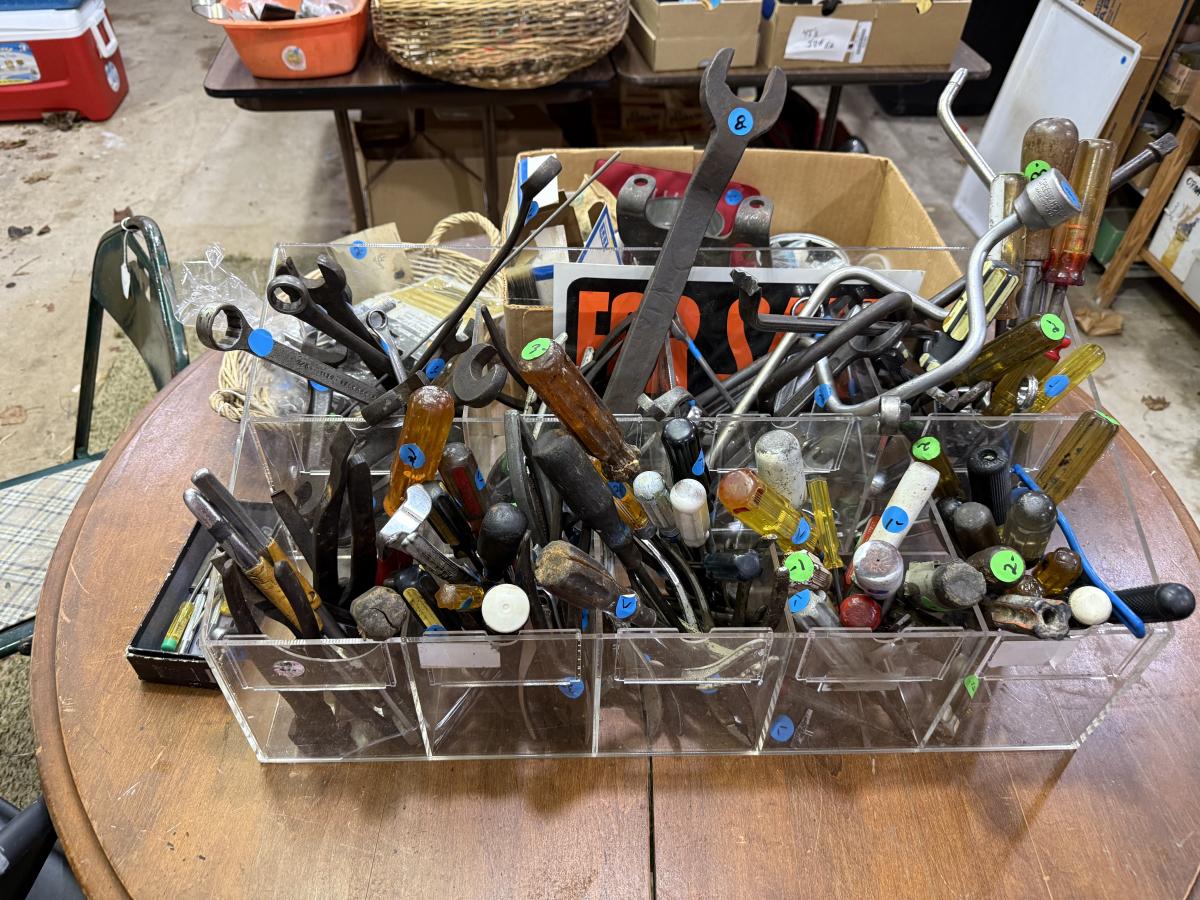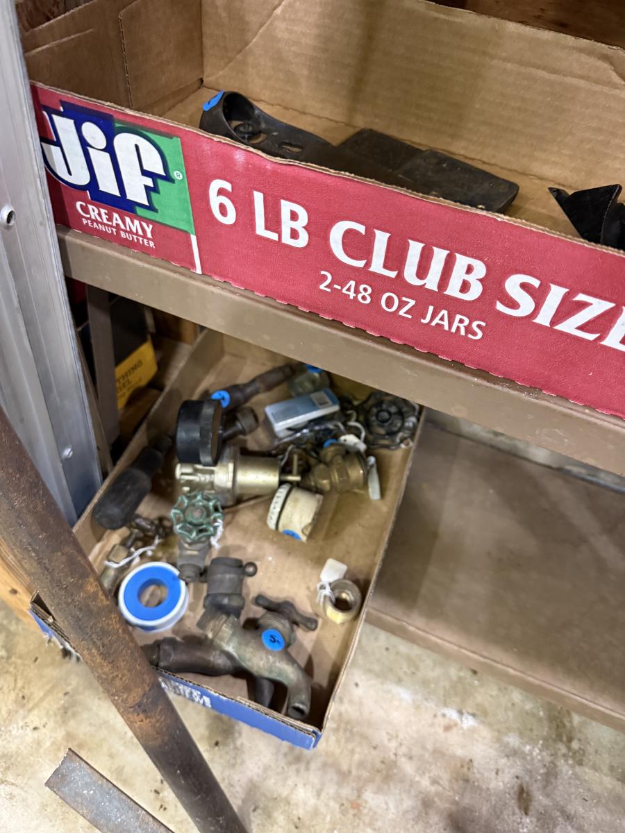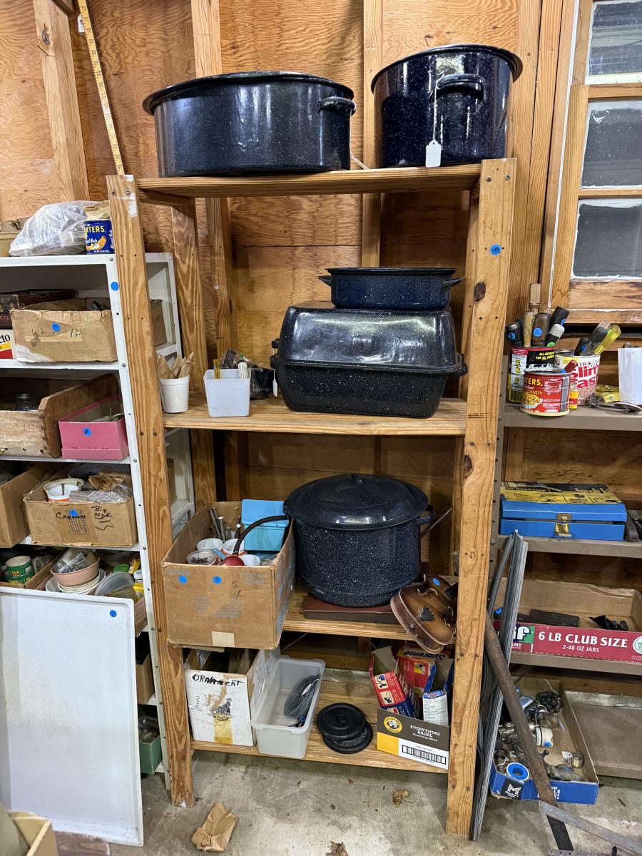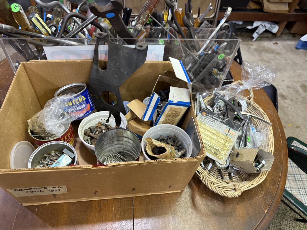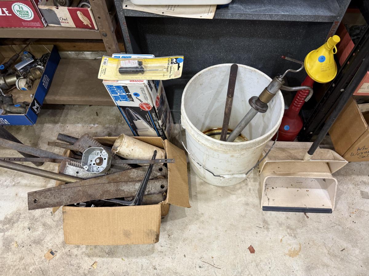 Garage 1: hand tools, hardware supplies, car stuff, electrical, plumbing, cooking, metal shelving, gas ruler, & more