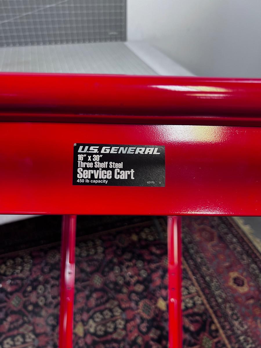 Measures 16 x 30 Good Used Condition. Rolls along great! Excellent for the shop.