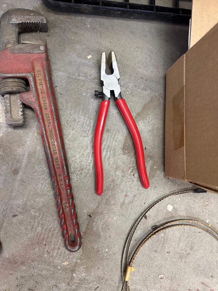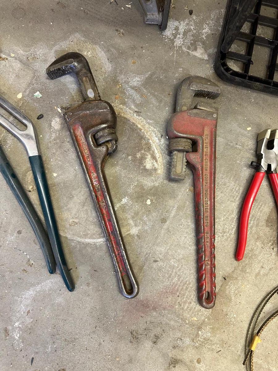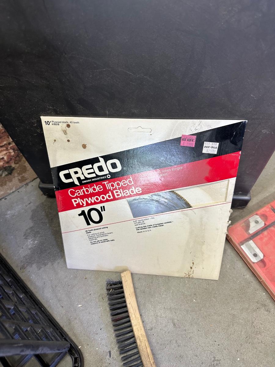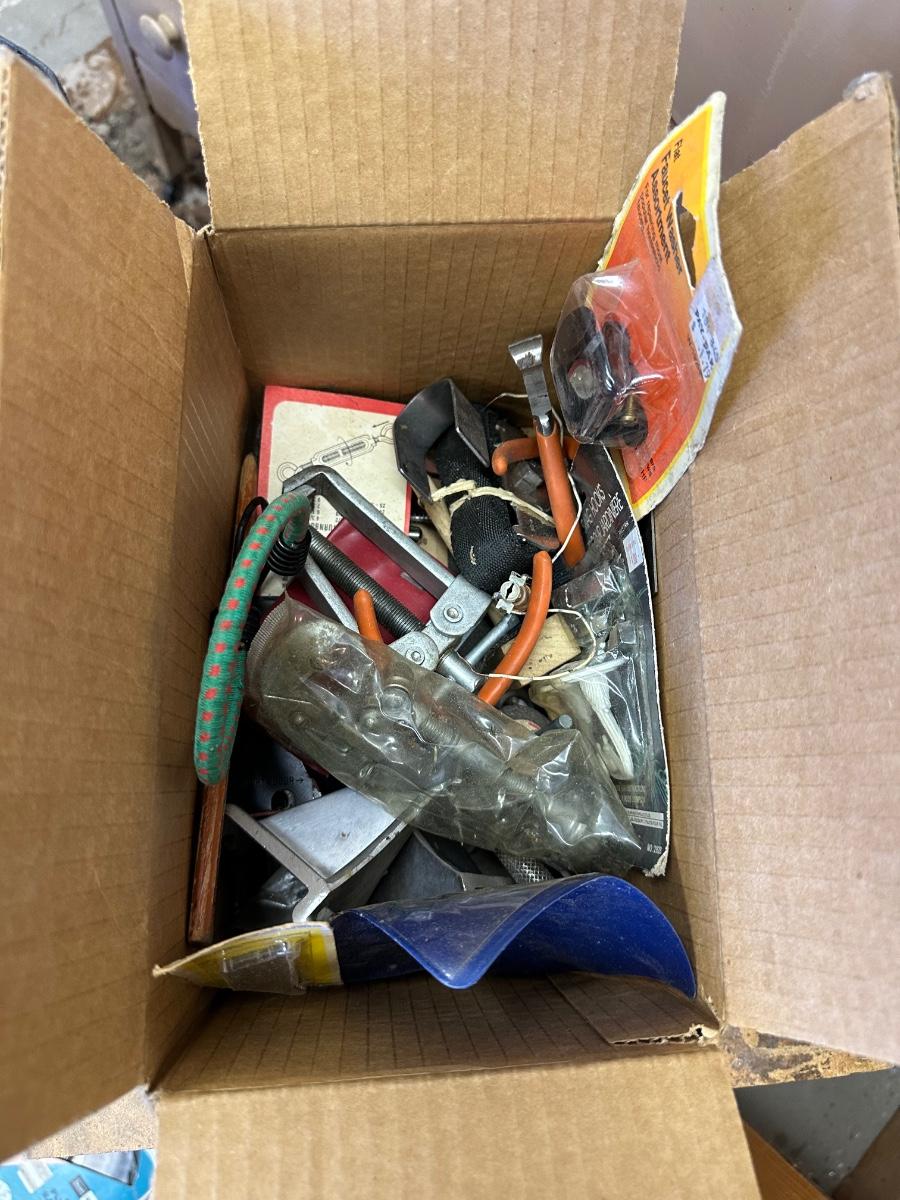 TOOLS, SAW HORSE, PLASTIC CRATES AND PLENTY OF MISC