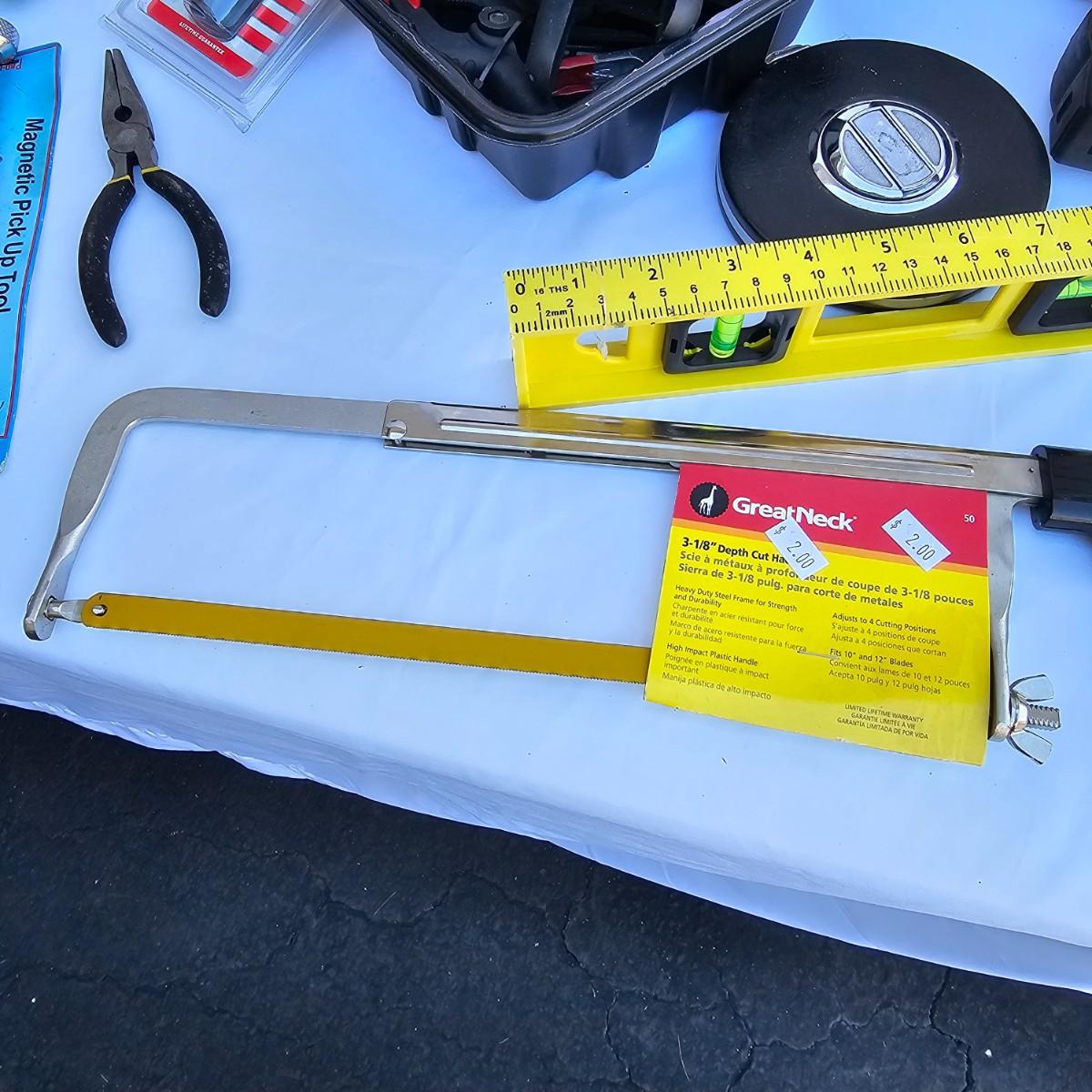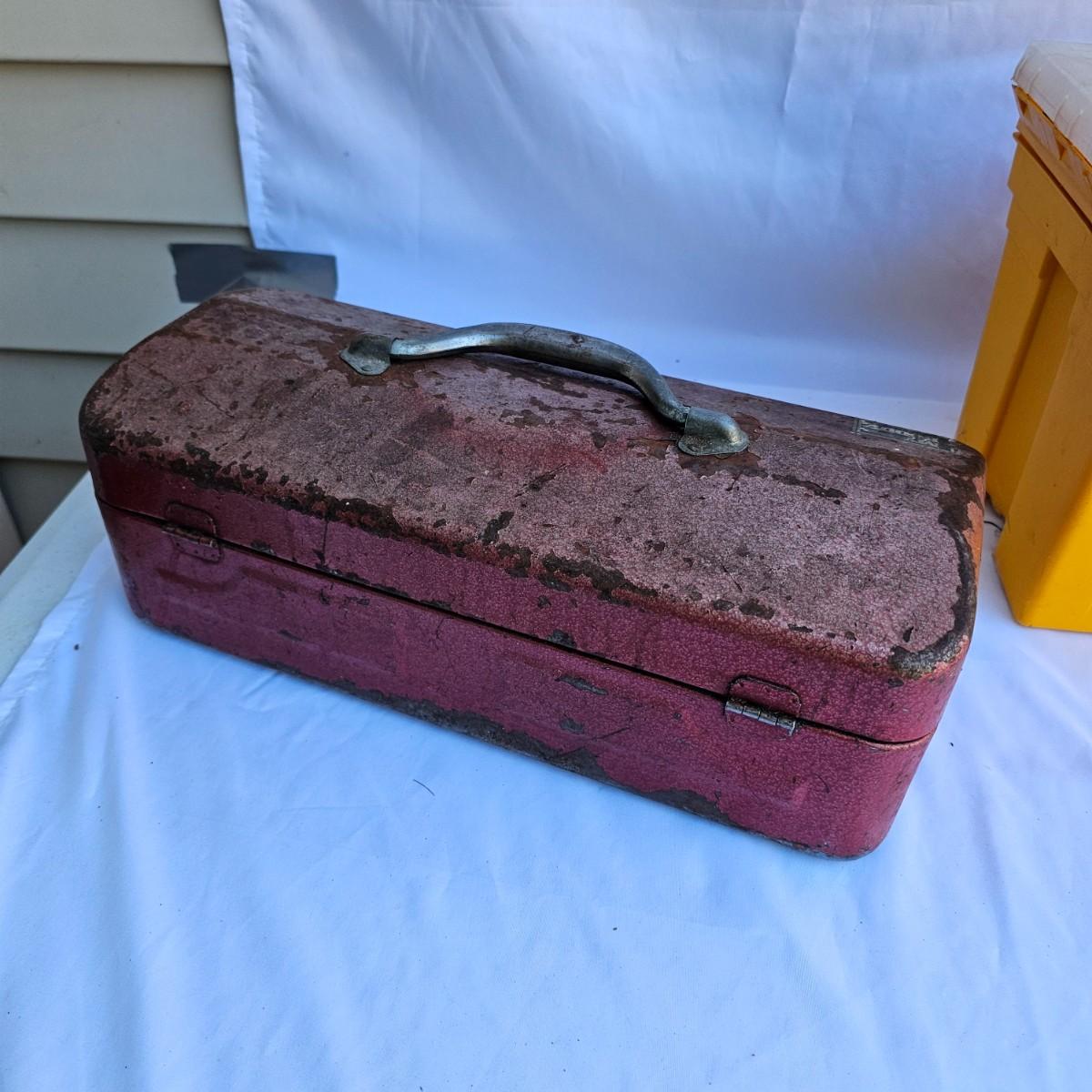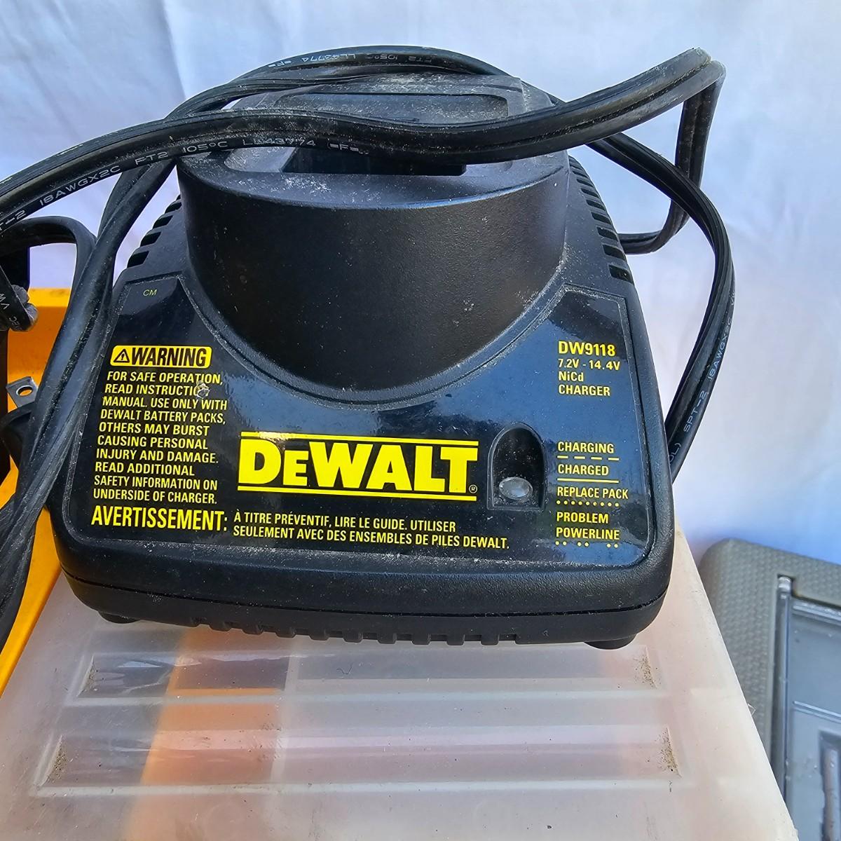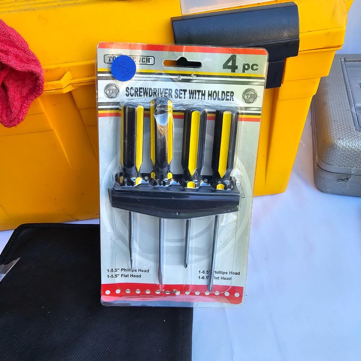 Four tool boxes full of assorted tools and also a large quantity of loose tools and items. One combination home kit with a good selection of everything. Screwdrivers, wrenches, pliers, hammers and more. One DeWalt 12v cordless drill, battery and charger, powered on when plugged in and charged. Sockets, allen wrenches and levels. Please note yellow tool box is missing one latch. See photos for details. Local pickup only.