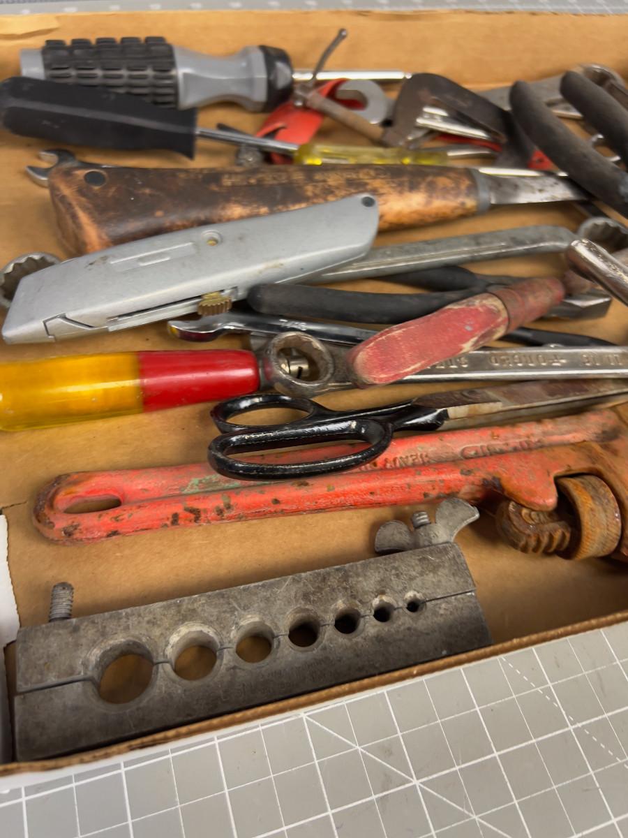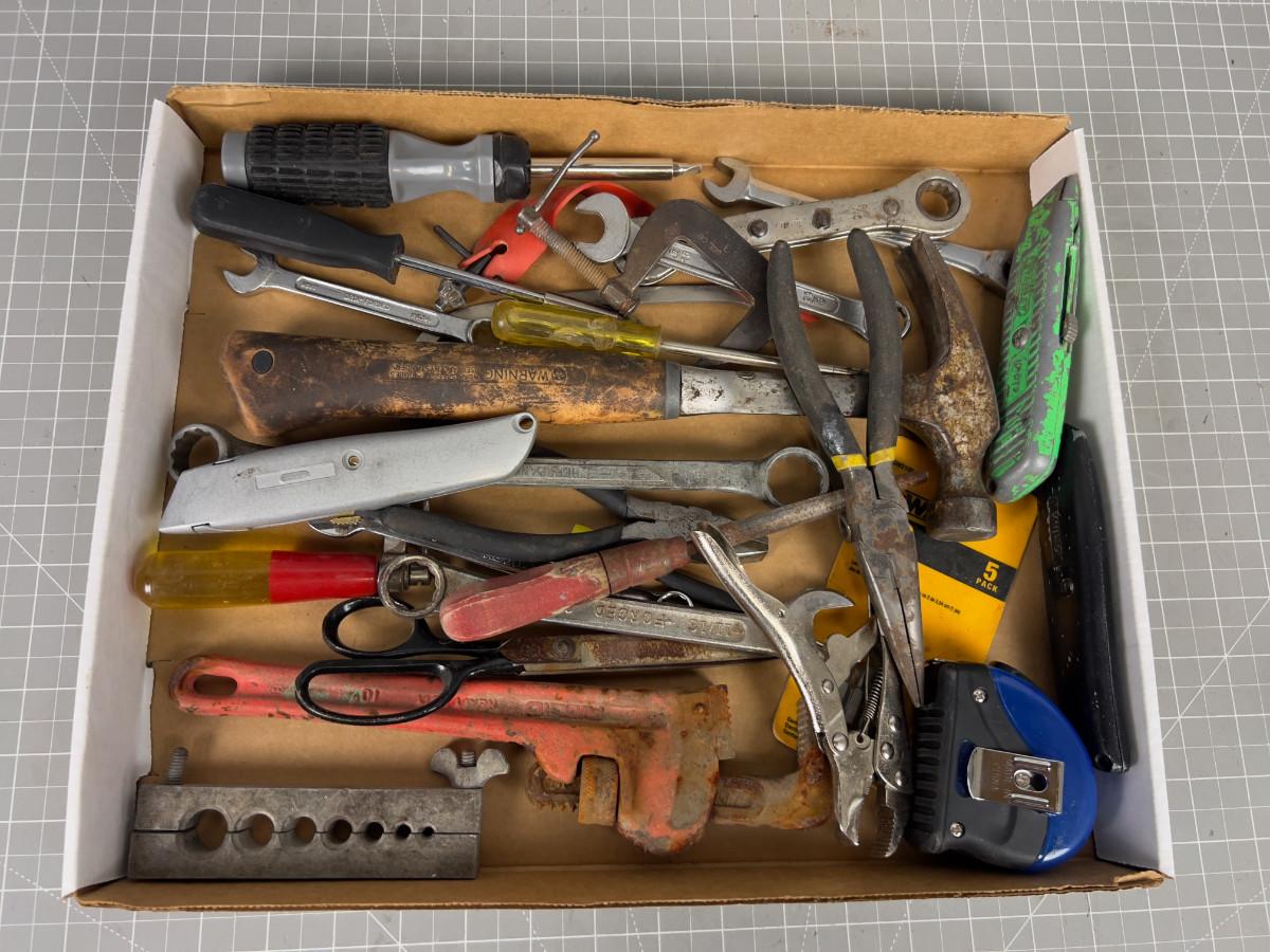 Tools; Vice Grip, Pipe Wrench and Hammer