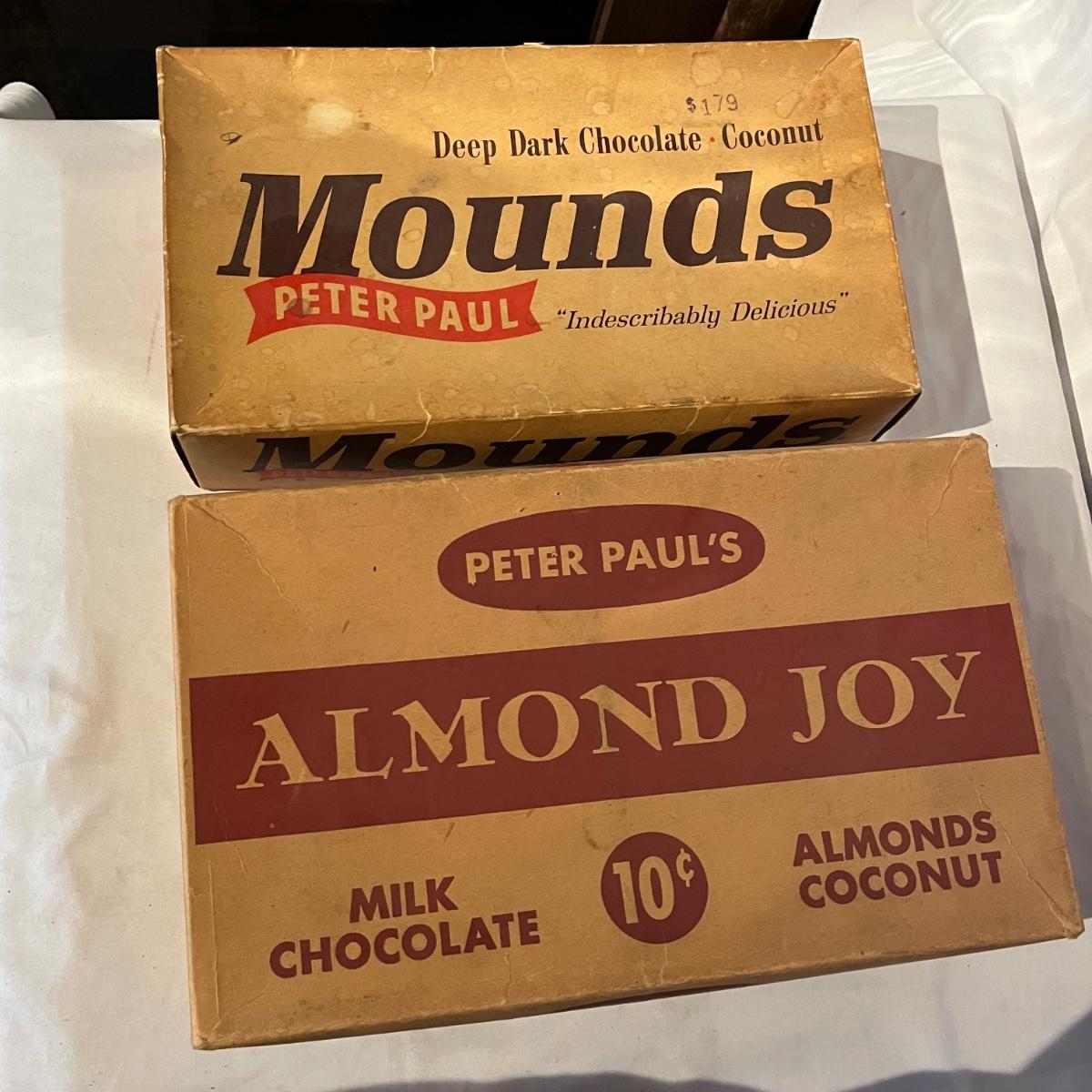 Lot contains vintage empty boxes of Tootsie Roll, Hershey , Almond Joy, Mounds, Toms, American Candy Company and more. Check out the Chattanooga Caramel Chews!