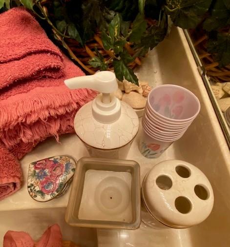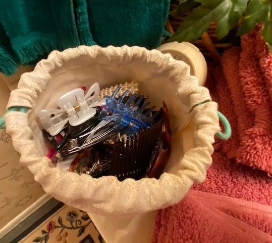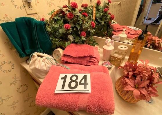 Towels, soap, faux flowers etc.