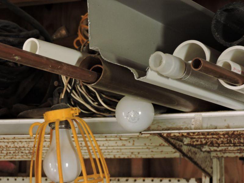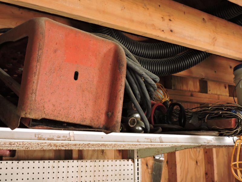 All of the items on the top shelf are yours! Make sure that you bring a ladder to collect this lot. I have not gone through anything up there. All I know is what is in the pictures. Looks to be a water cooler, black paper, 4" vintage wood level, lights, and much more! Look through all photos before bidding. Please read Terms and Conditions before placing a bid. Pick up is Friday, October 25th between 4 and 7, and Saturday, October 26th between 9 and 1. Please bring boxes, tools, and muscle to help move your items. Props included in photos are not included in listing. All measurements are approximate.