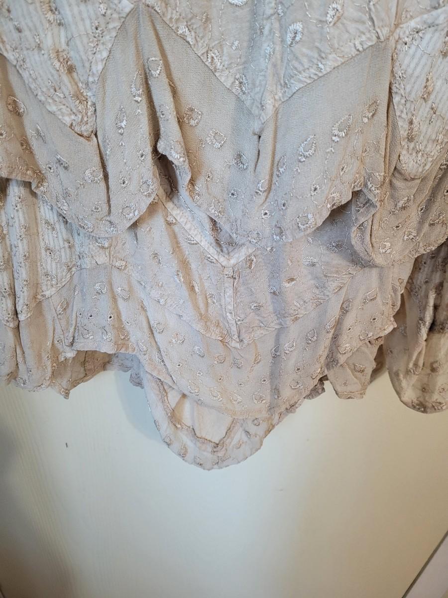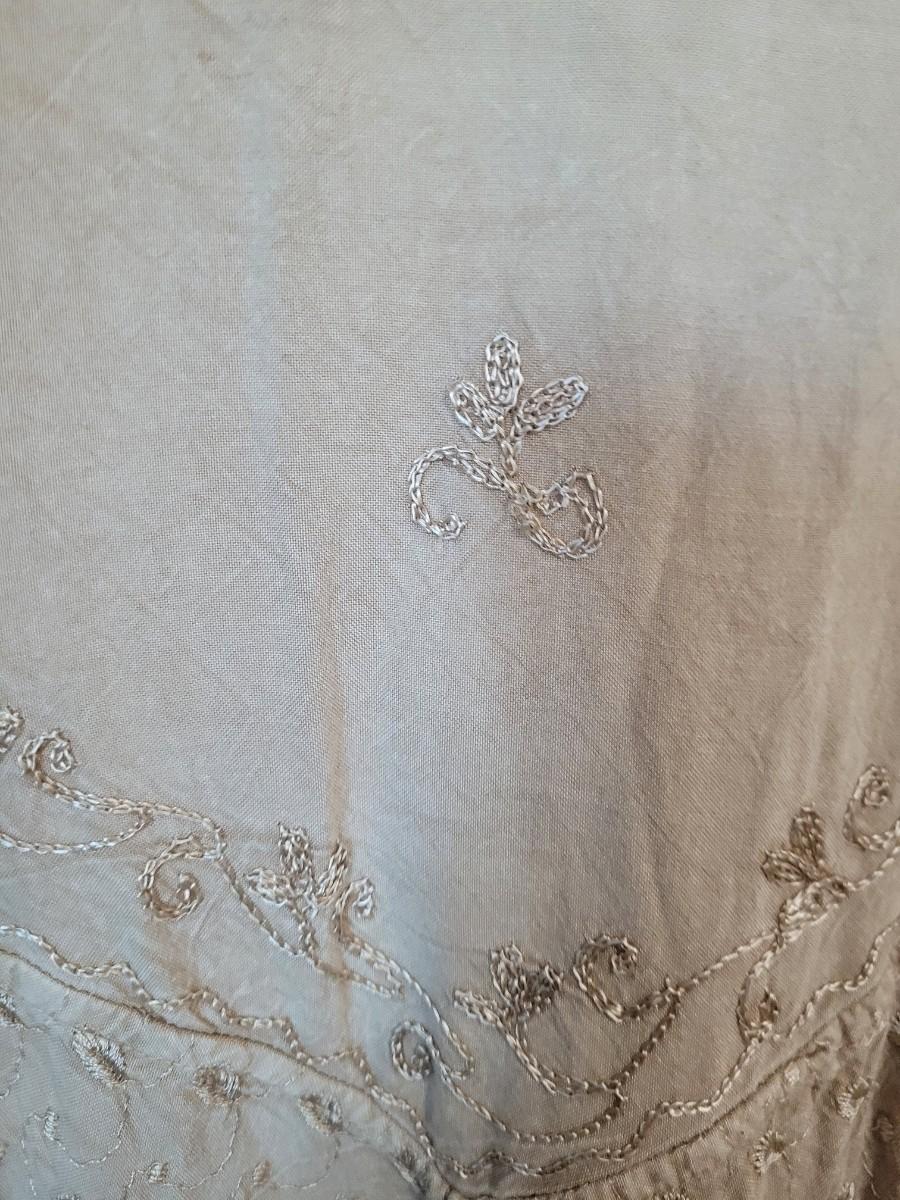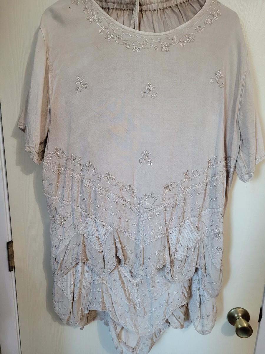 Beige Linen top and skirt w/ embroidery. Vintage worn Notice small holes in picture 2X