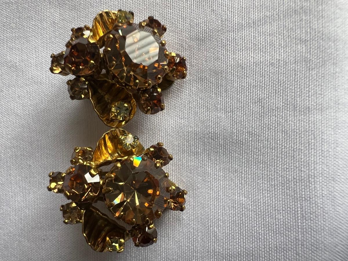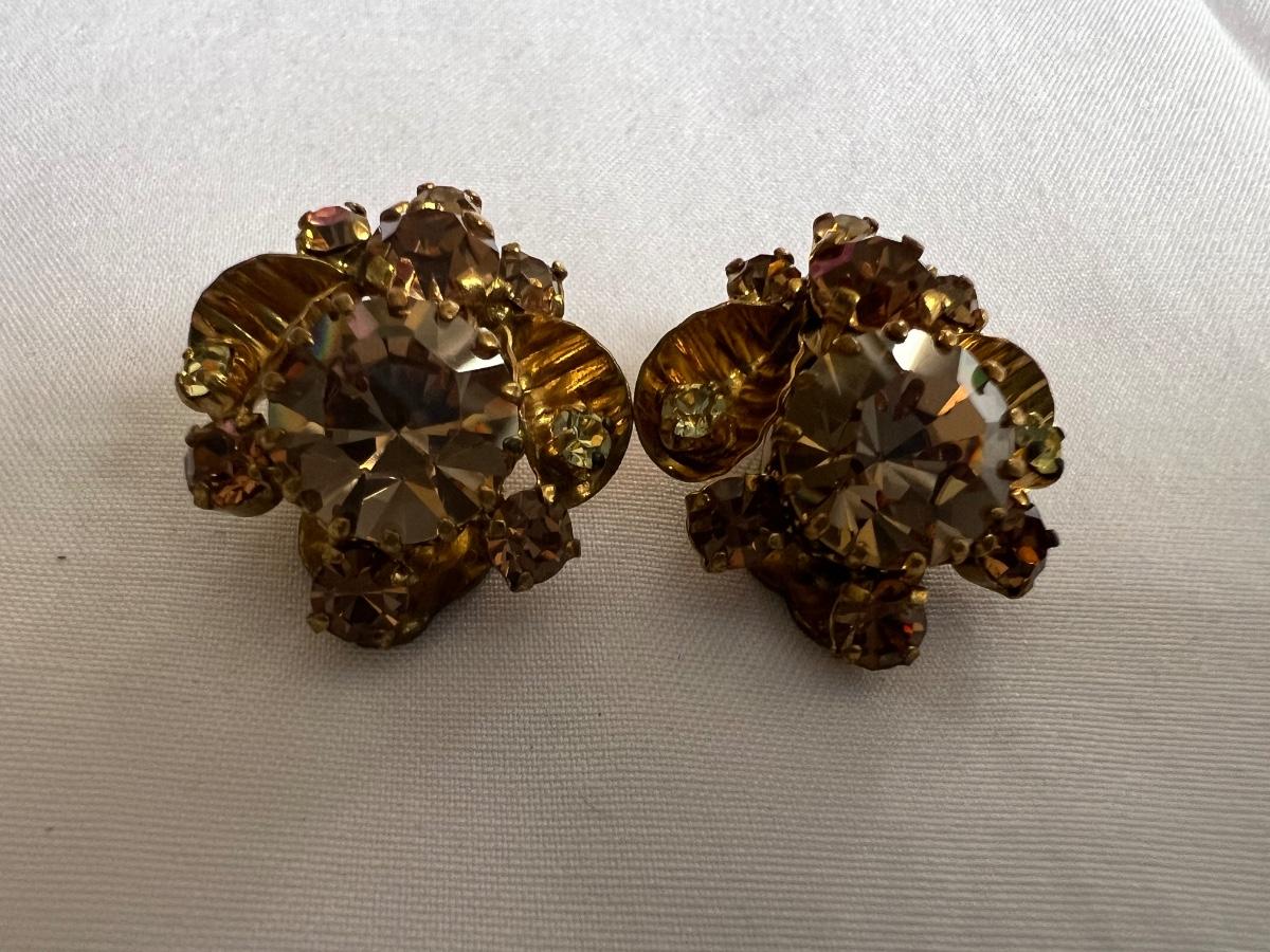 Vintage Gattie Carnegie Topaz AB Rhinestone Clip On Earrings
