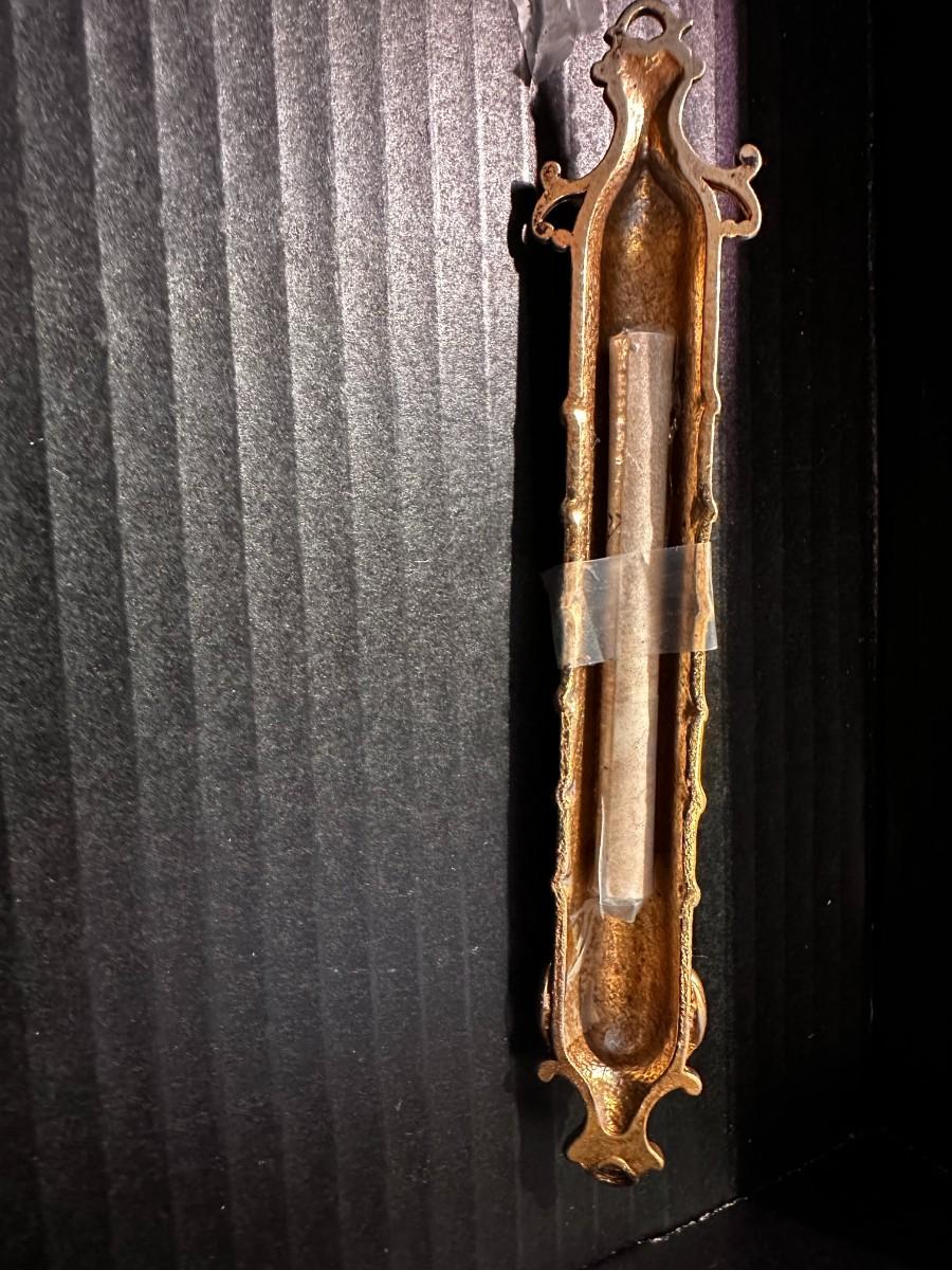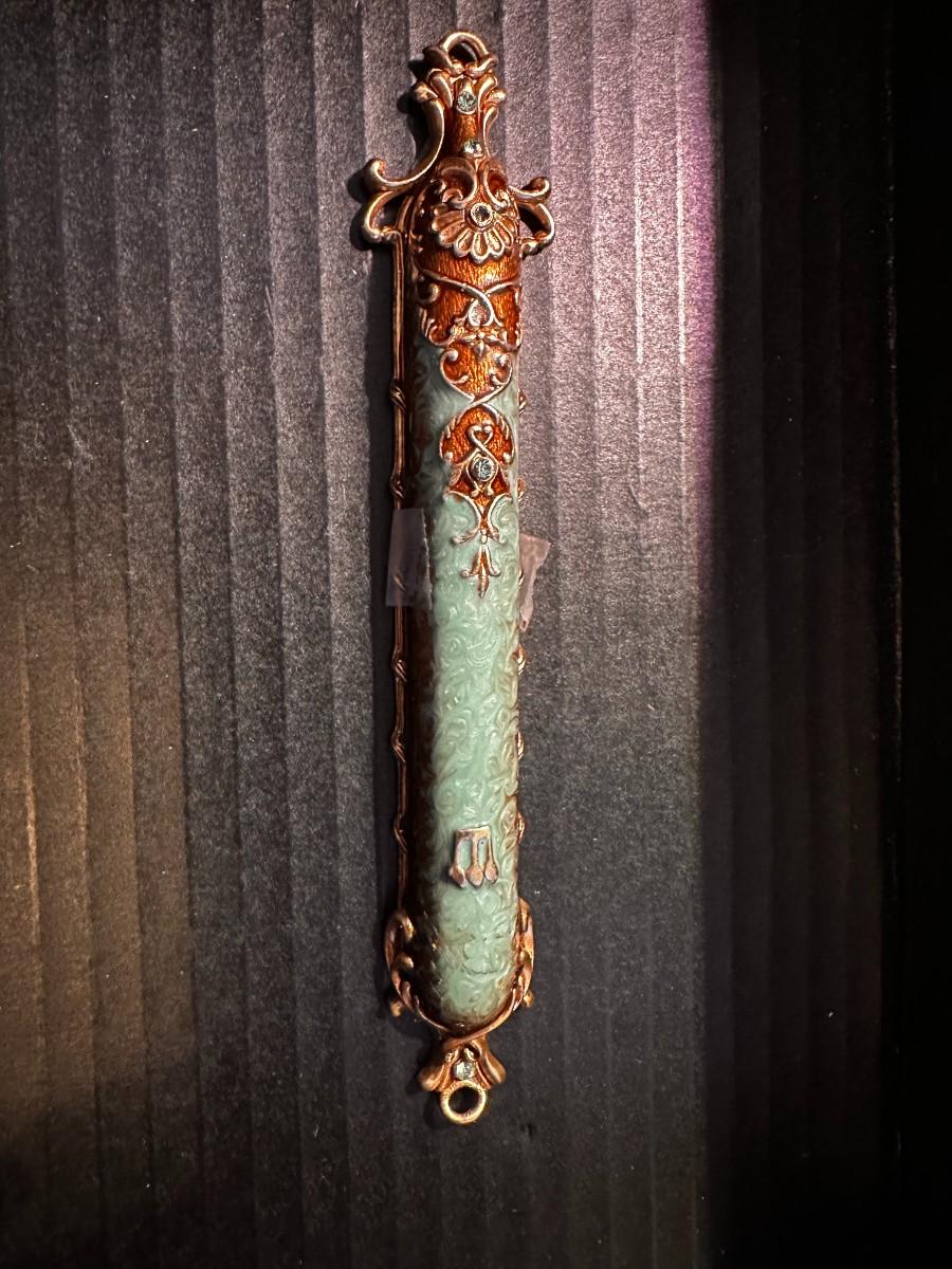 Add a touch of elegance and tradition to your home with our Topaz Enamel Mezuzah with scroll. This beautiful mezuzah features a stunning topaz enamel design that will enhance any doorpost in your home. The included scroll contains the sacred Jewish prayer, making this mezuzah both a decorative and meaningful piece. Whether you are looking to honor your faith or simply enhance your home decor, this Topaz Enamel Mezuzah is the perfect choice. Shop now and bring a touch of beauty and spirituality into your living space.