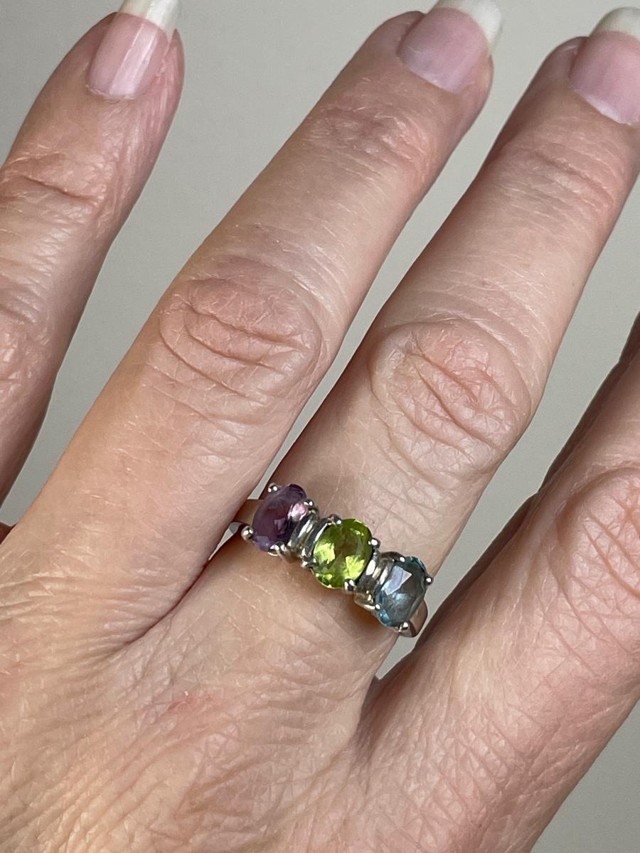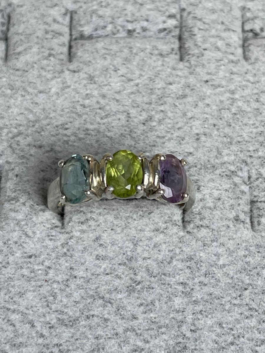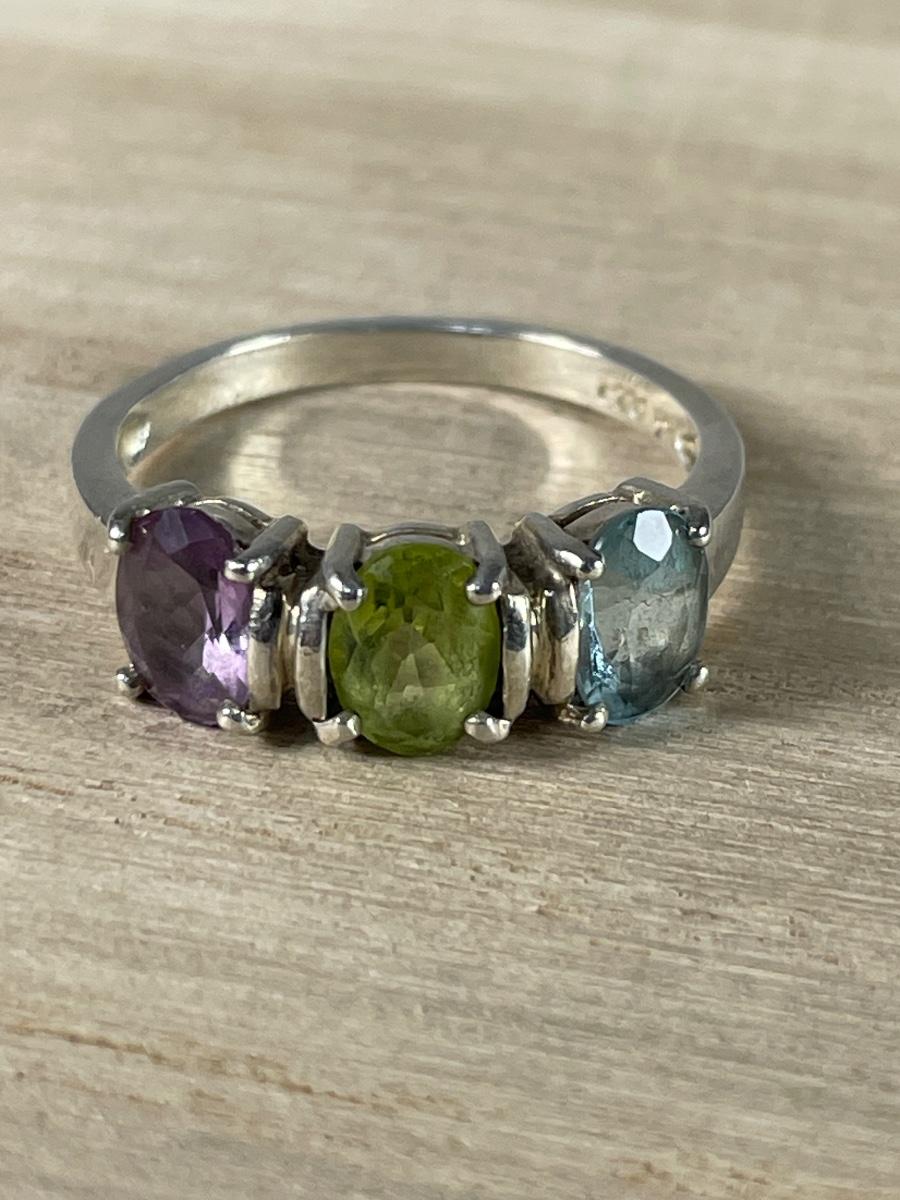 Topaz Peridot Amethyst Sterling Ring 8.5-9