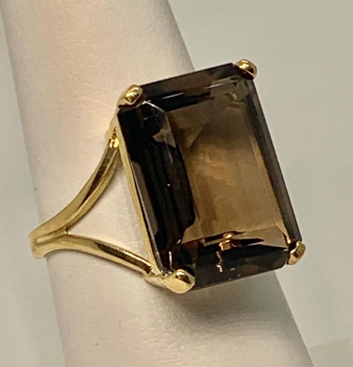 Tw 4.3k 10k PSCO Yellow Gold Brown Topaz Cocktail  Ring sz7