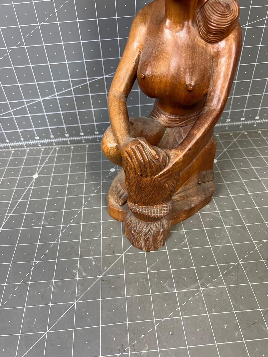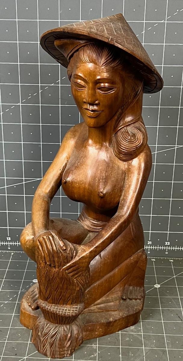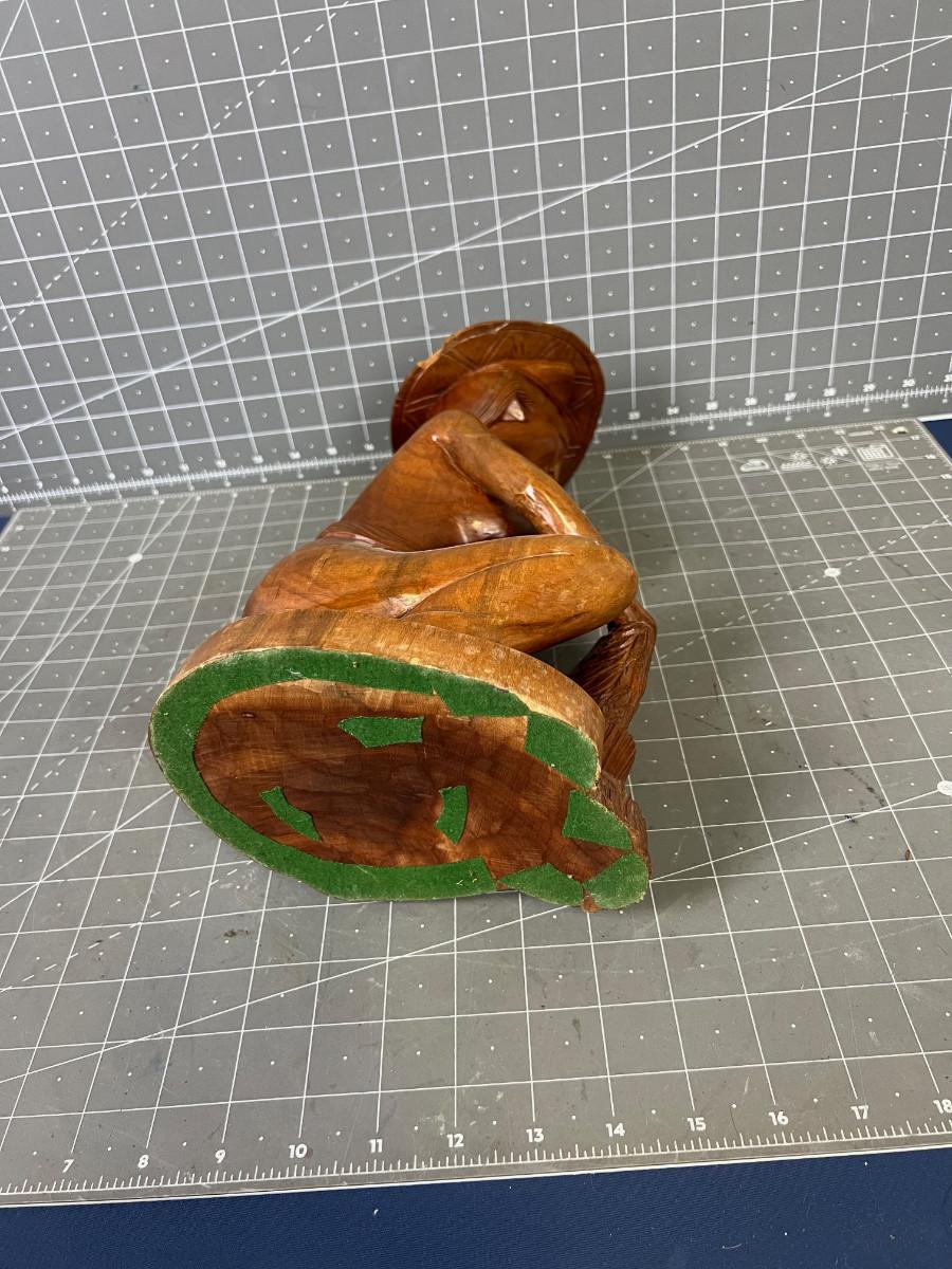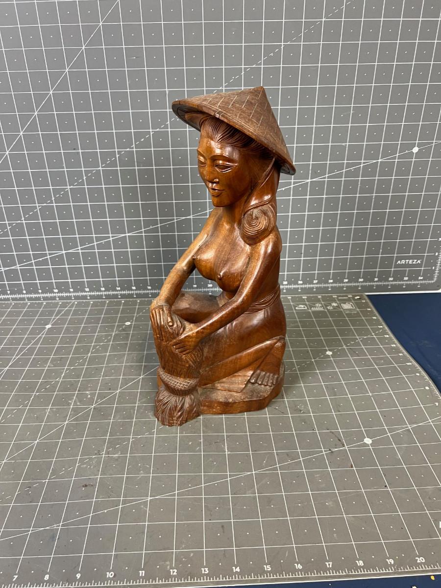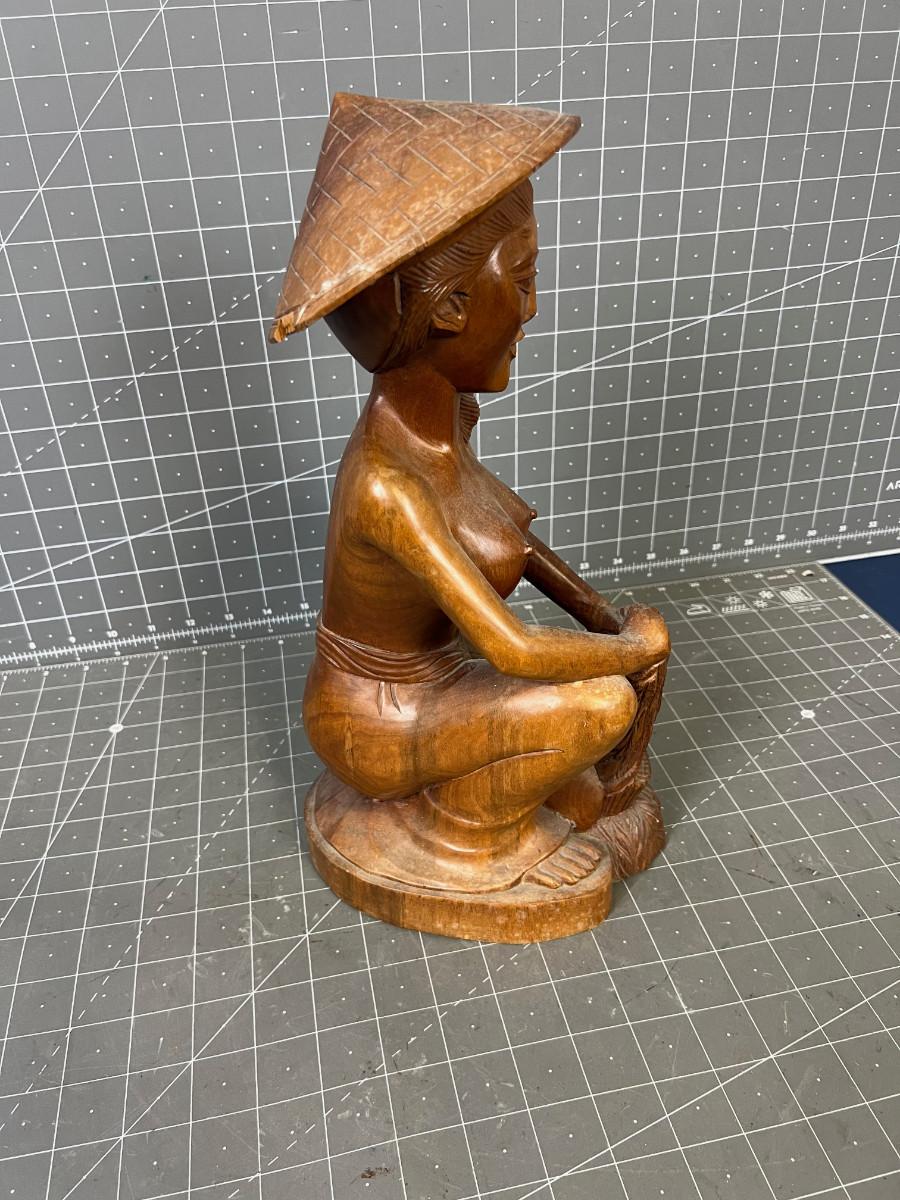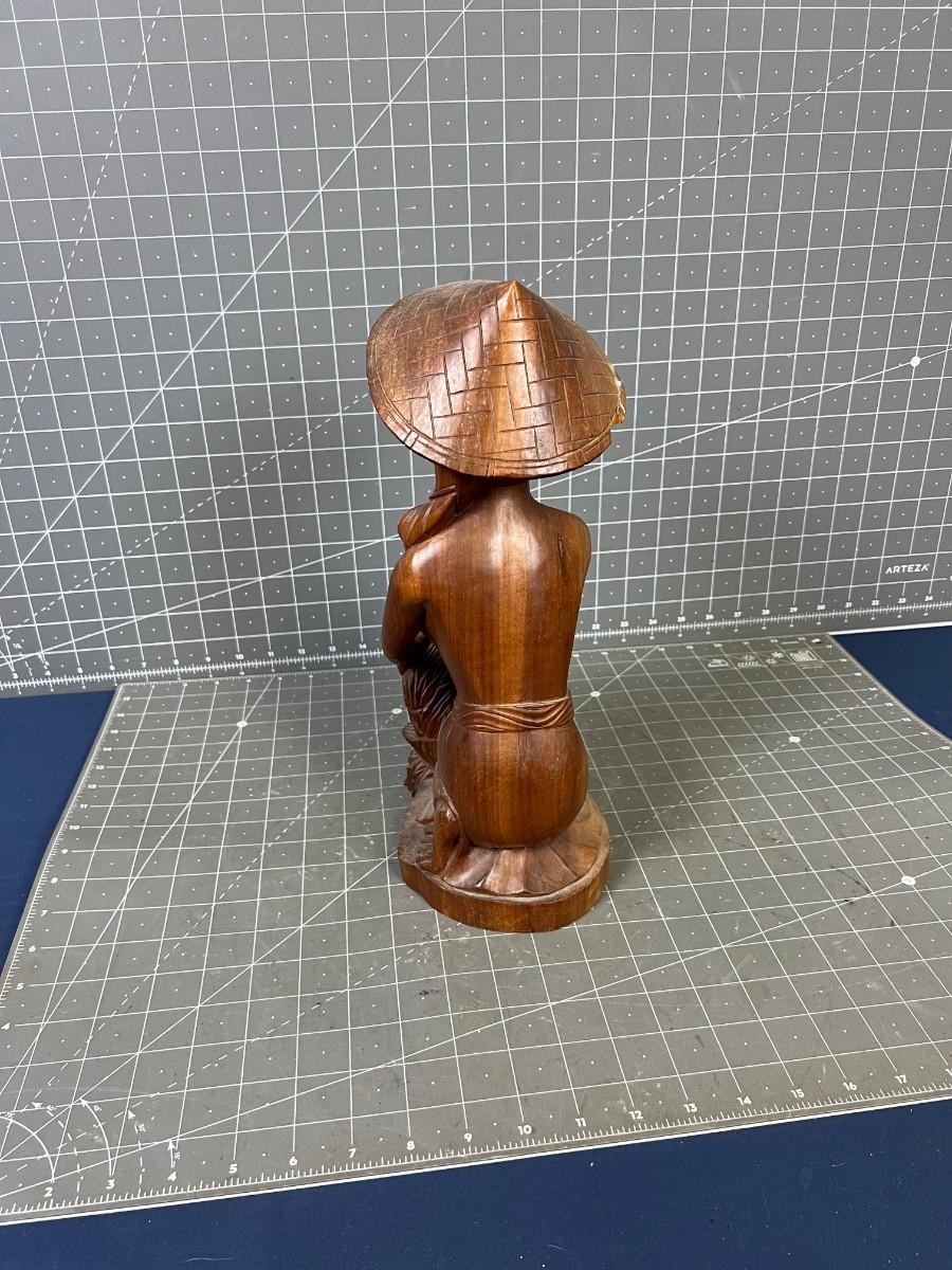13" Tall - Used Wood Carved Asian With Chip on the Hat