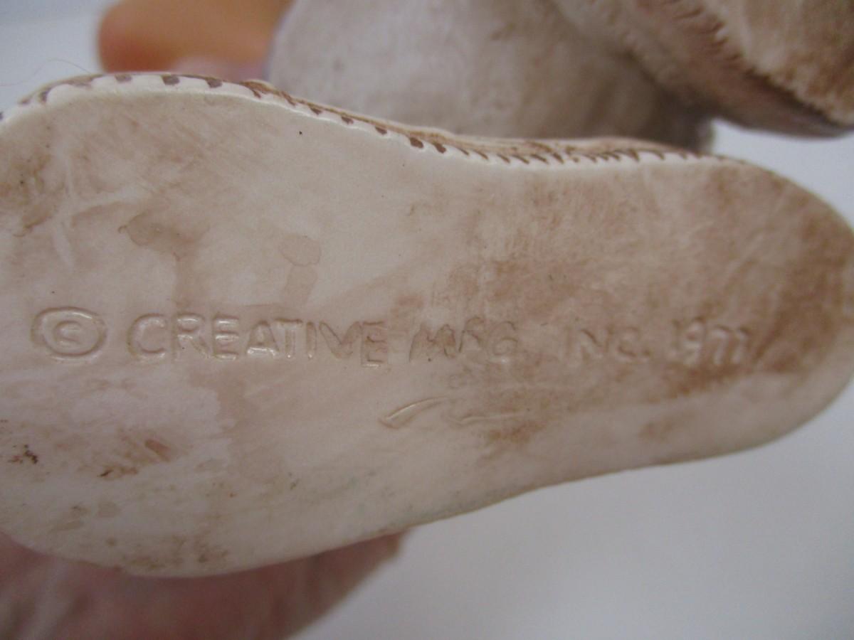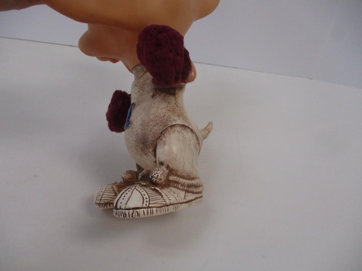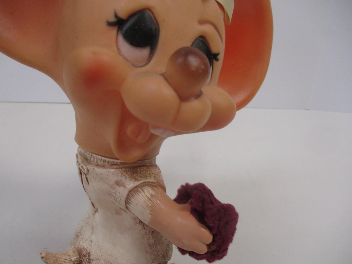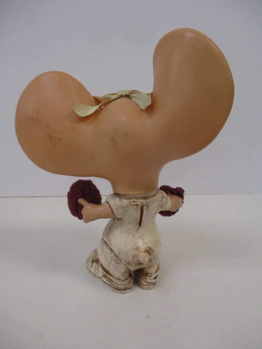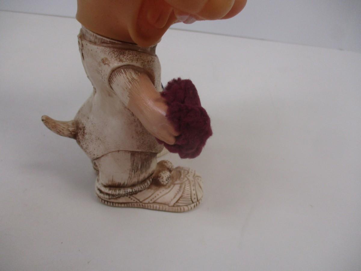 The head swivels, and comes off to retrieve deposited coins. There is some wear from age