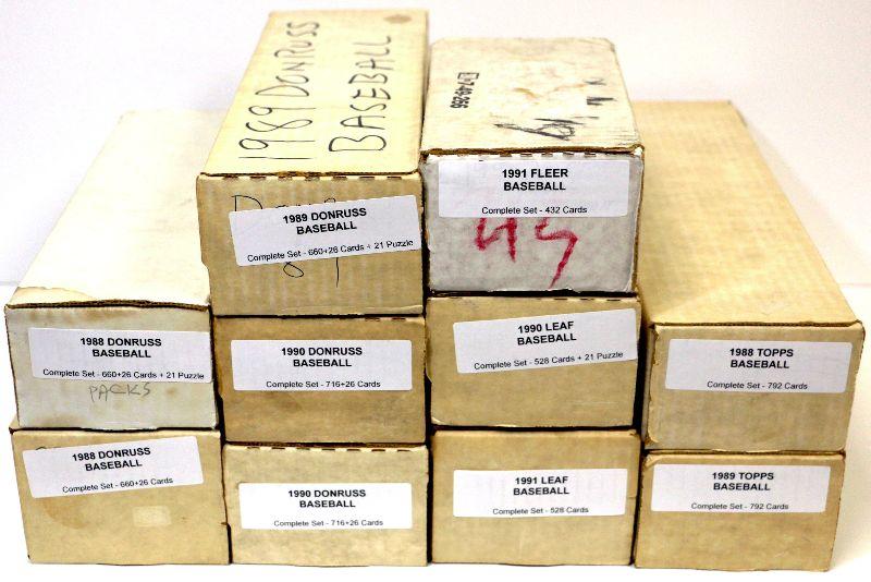 TOPPS FLEER DONRUSS 1988-91 BASEBALL 10 FACTORY COMPLETE SETS LOT