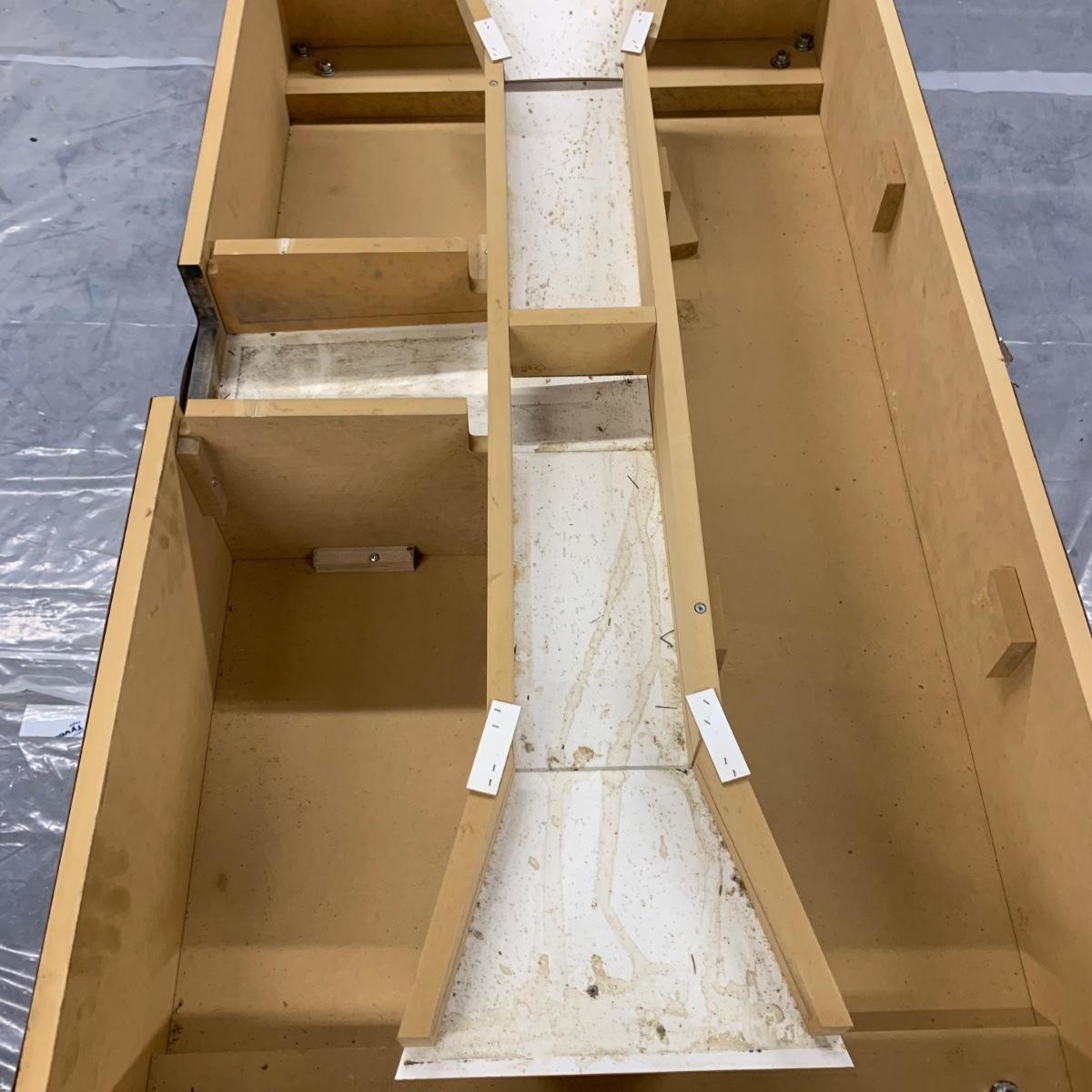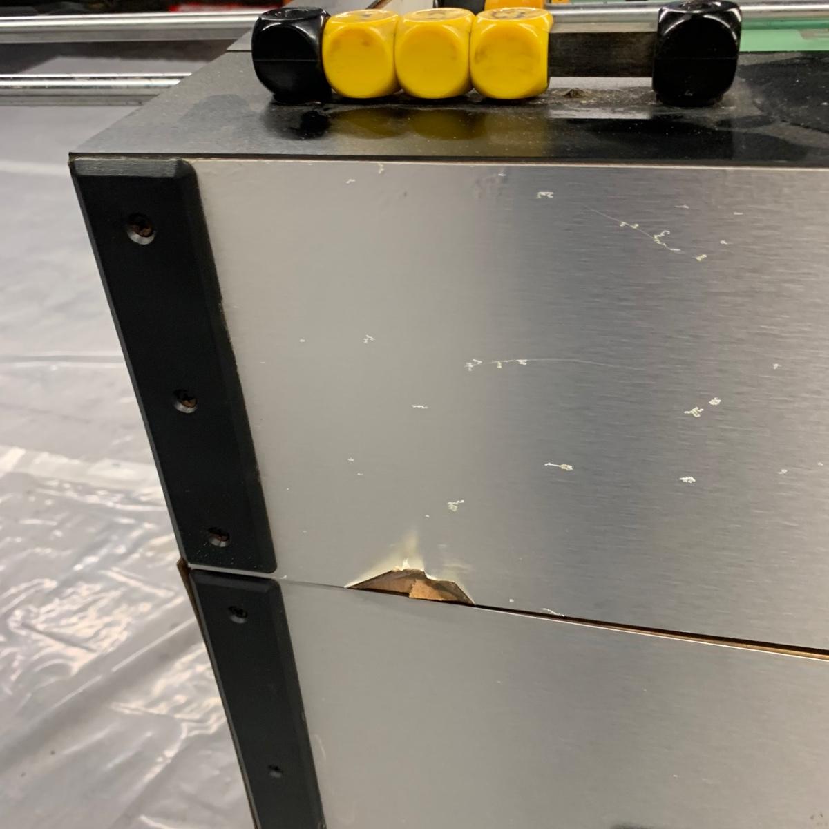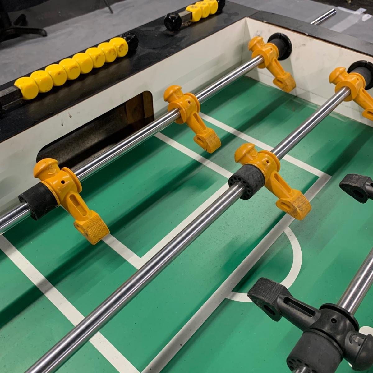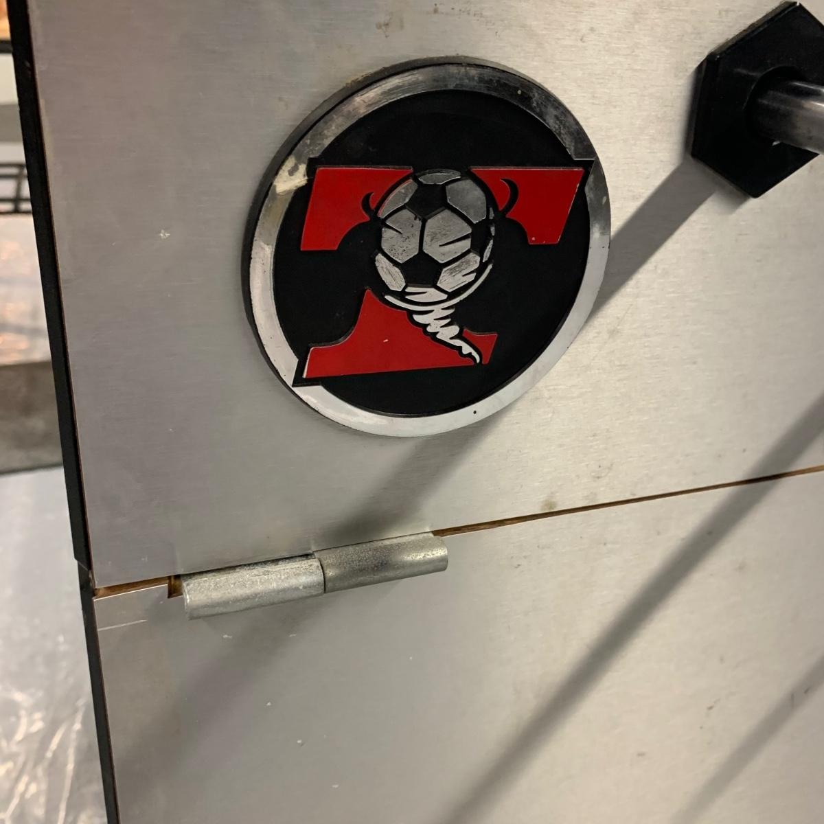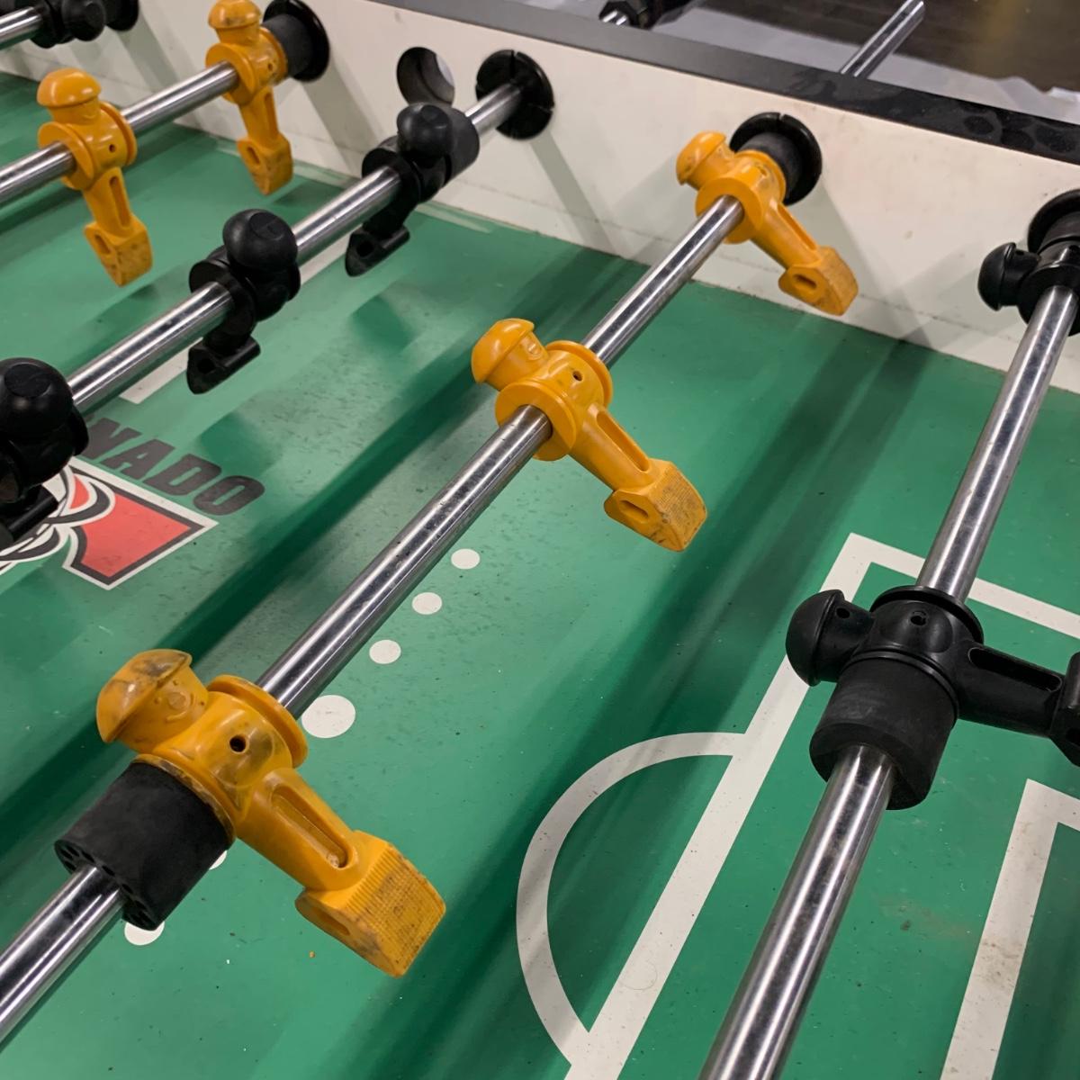 Tornado brand table soccer/foosball table. Table comes in two pieces for easier transport. When assembled, table measures 30” x 56” x 36.5”. Table appears to have been used and loved for many years. It has some warped pieces on its side panels, some dust on the legs and surface, and some scratches on the surface. The pins that allow the top part to be opened as a lid are missing, but could easily be replaced. The legs are a sturdy plastic and the frame is wood. There is a keyhole but no key is included. No balls are included. Local pick up only. The winning bidder will need to bring help to move this item as it is quite substantial. There is a small flight of steps to move it down from the building to the parking lot.