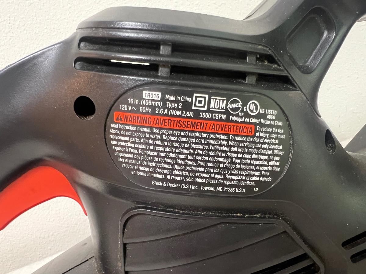 Black & Decker 16in hedge trimmer model TRO16.