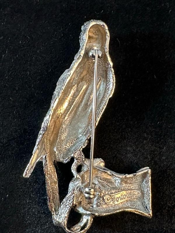 Tortolani Signed Falconry Pin Hawk Eagle Bird of Prey Falconer Glove Brooch