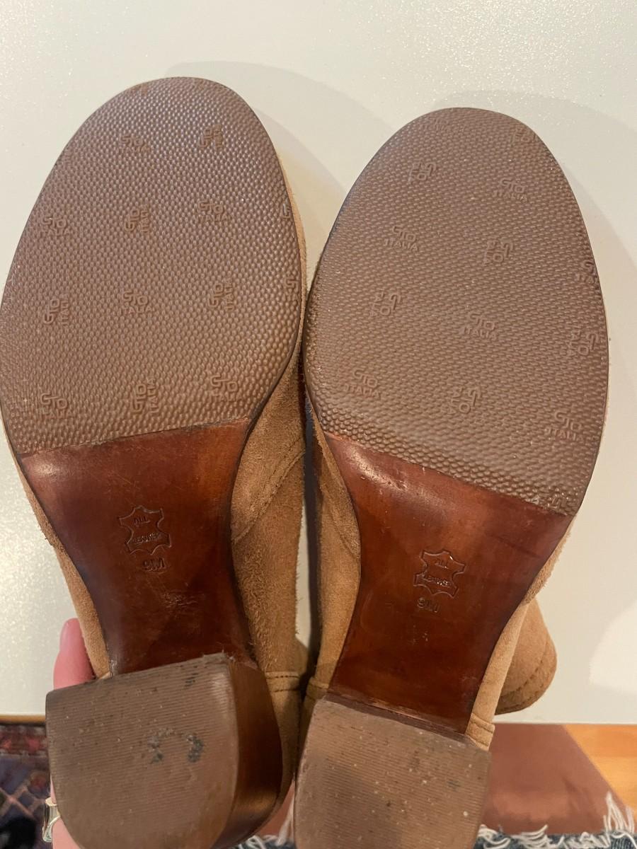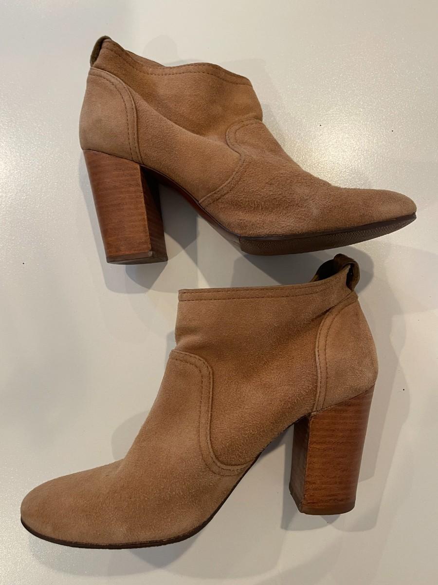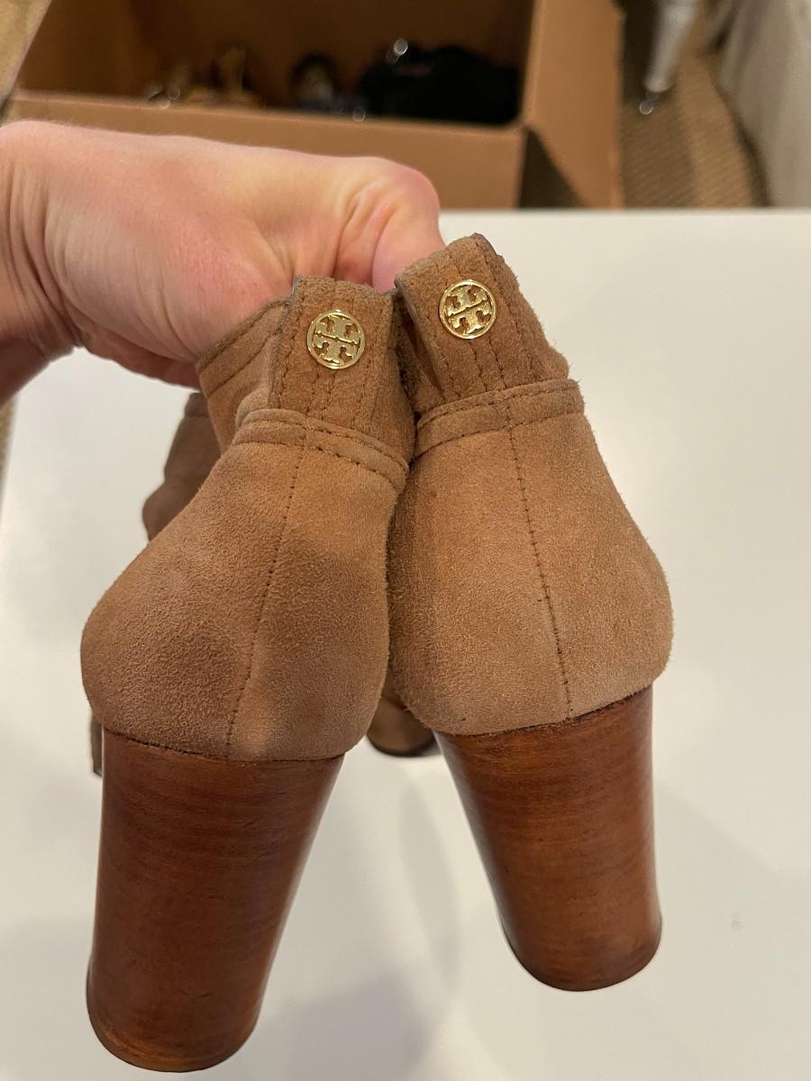 TORY BURCH: BROWN BLOCK HEEL BOOTIE (WOMEN'S) SIZE 9