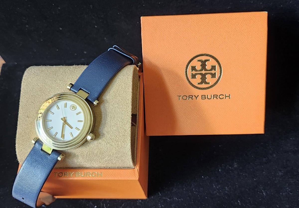 Tory Burch Classic T Navy gold watch