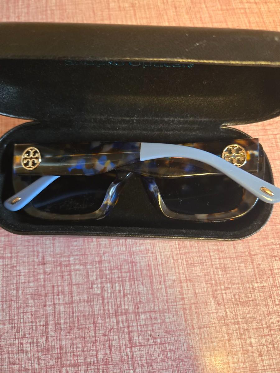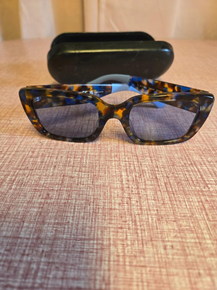 Tory Burch sunglasses. Lt blue & tortoise shell in color. Used, lenses do have some scratches. Hardcase included.