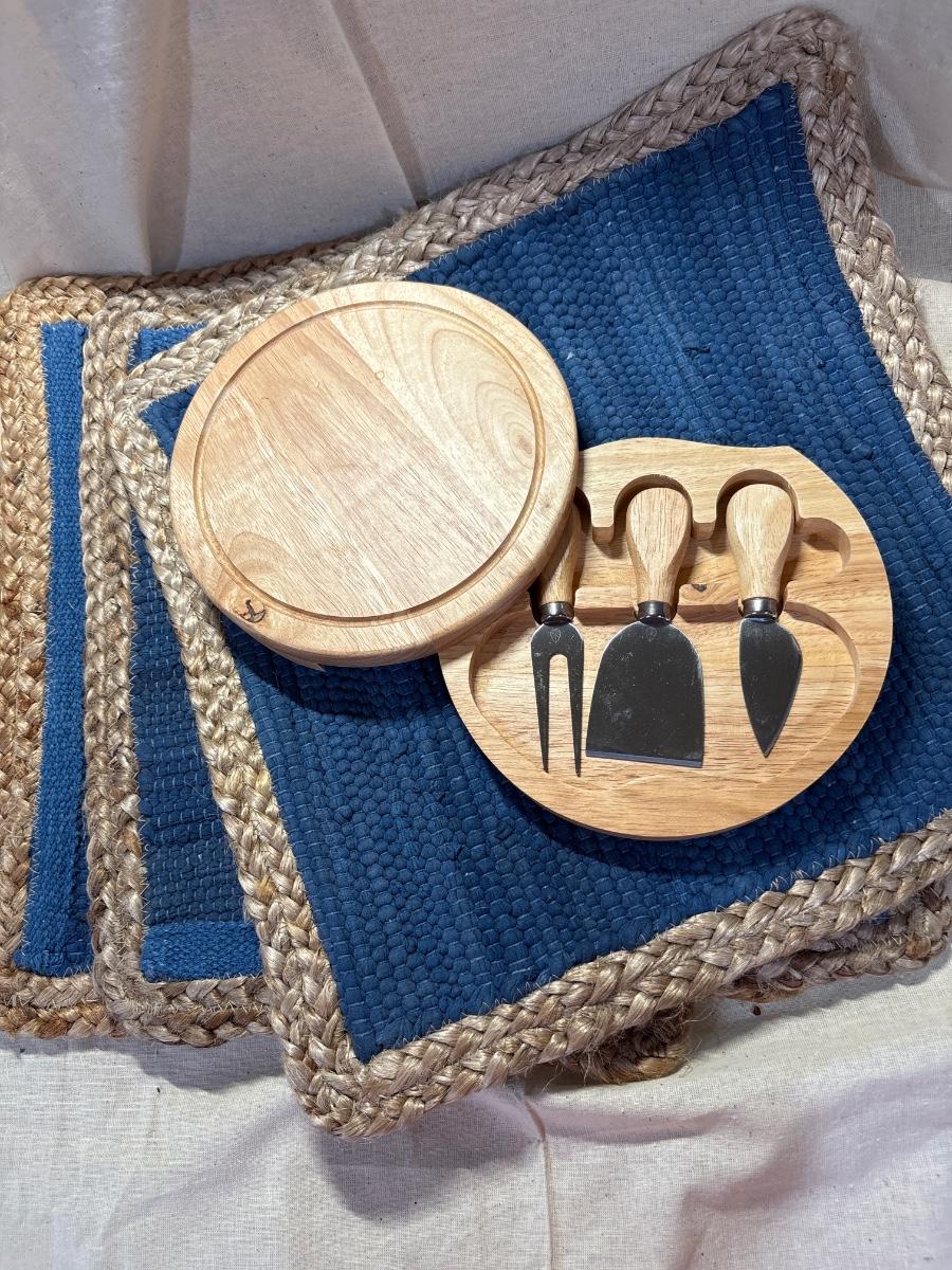 Four 15” square placemats. Cheese tools in a wood caddy by Toscana!