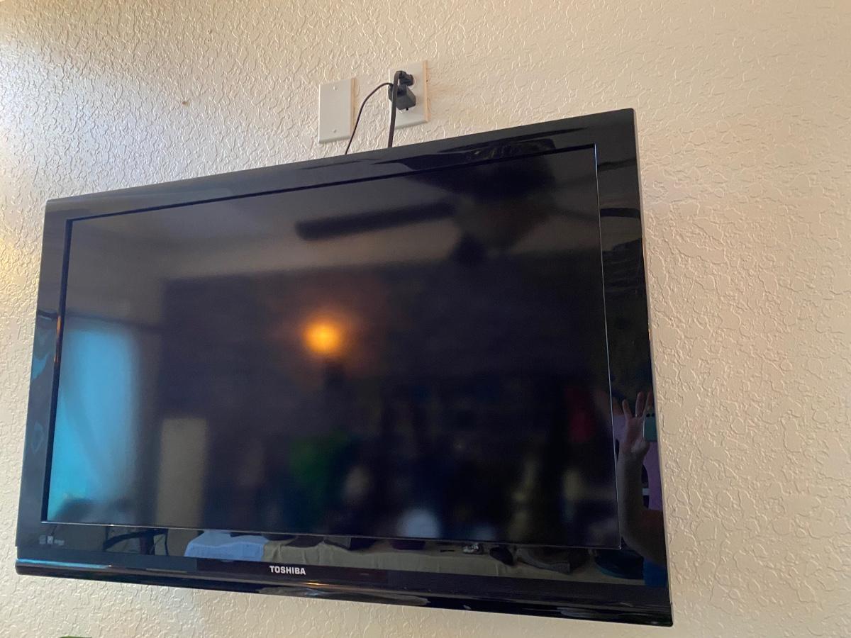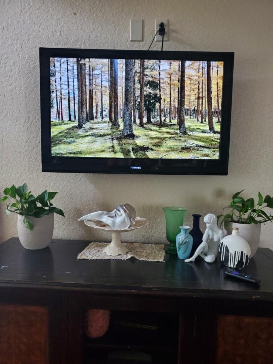 Toshiba 39 inch dia flatscreen TV. QSOUND, Dolby Digital, with Roku included - uses one remote for everything. Wall mount also included.
