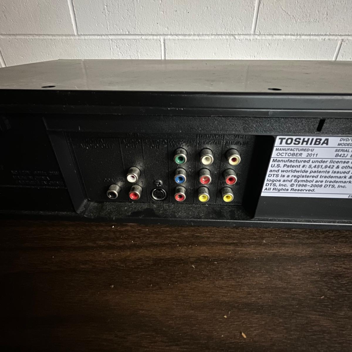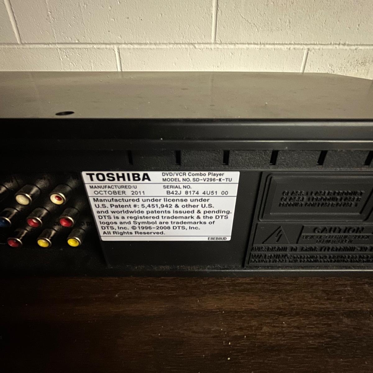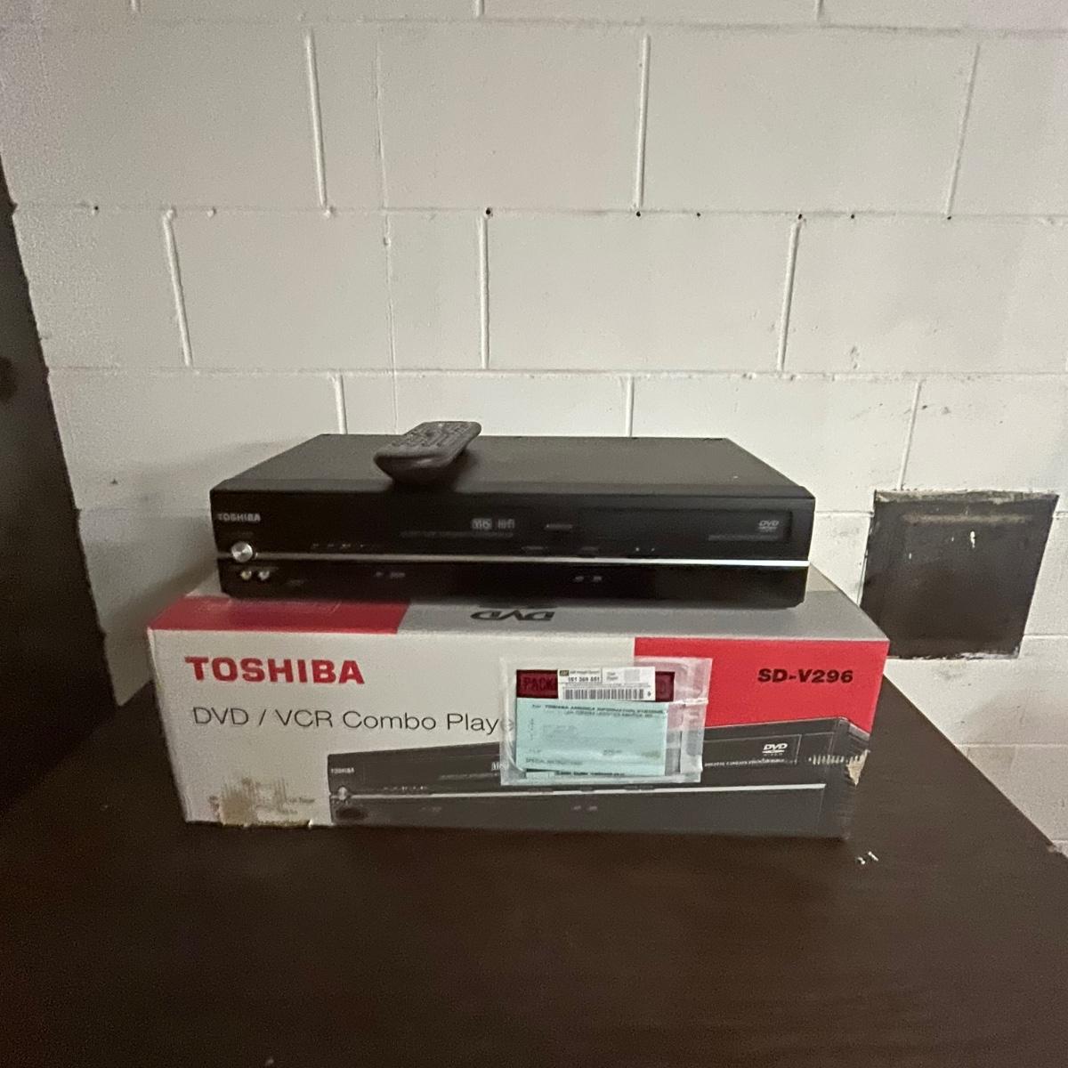 Lot includes a Toshiba DVD/VCR Combo model # SD V296. Machine powered on when tested.